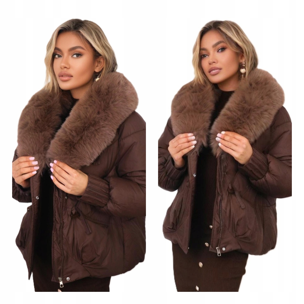 Куртка жіноча демісезонна зимова стьобана утеплена з хутром шоколадна