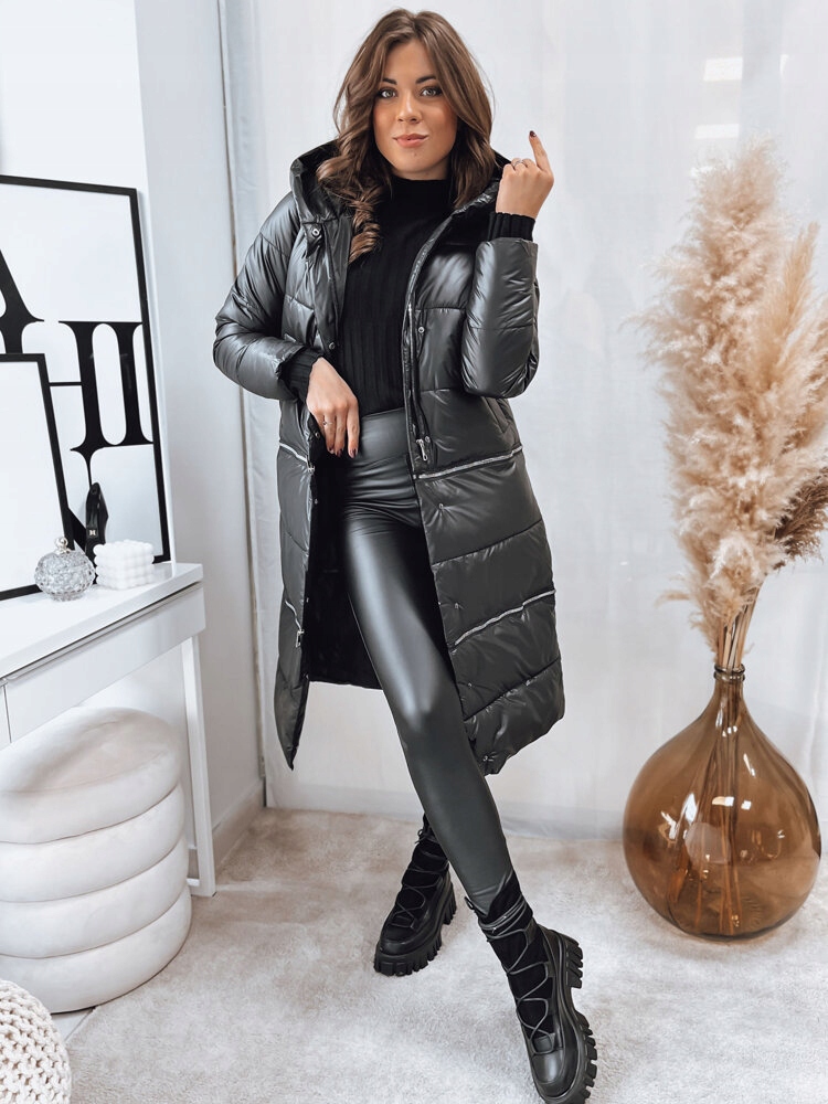 ЖІНОЧА ДОВГА ЗИМОВА СТЕГАНА КУРТКА З КАПЮШОНОМ