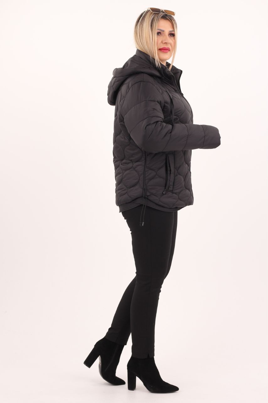 КУРТКА ЖІНОЧА ПЕРЕХІДНА ВАТОВАНА ВЕЛИКИХ РОЗМІРІВ З КАПЮШОНОМ ЛЕГКА МОДНА
