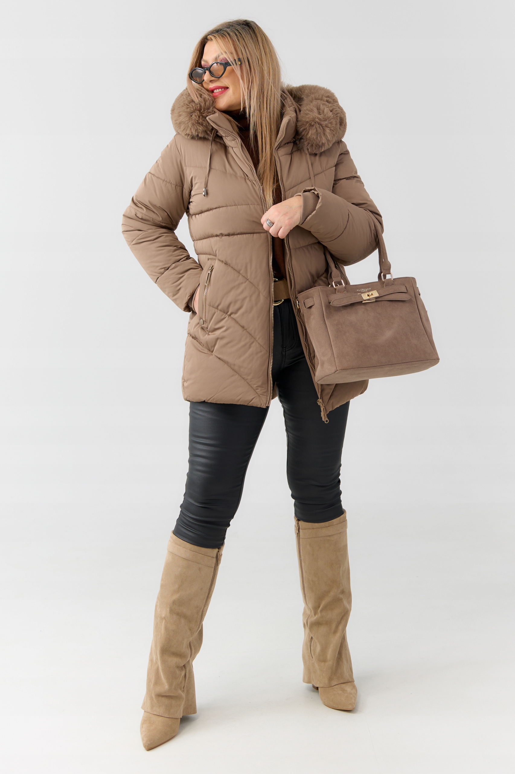 ✅ Просторий знімний капюшон, з широким хутром - хутро знімається, що дозволяє легко змінювати фасон куртки