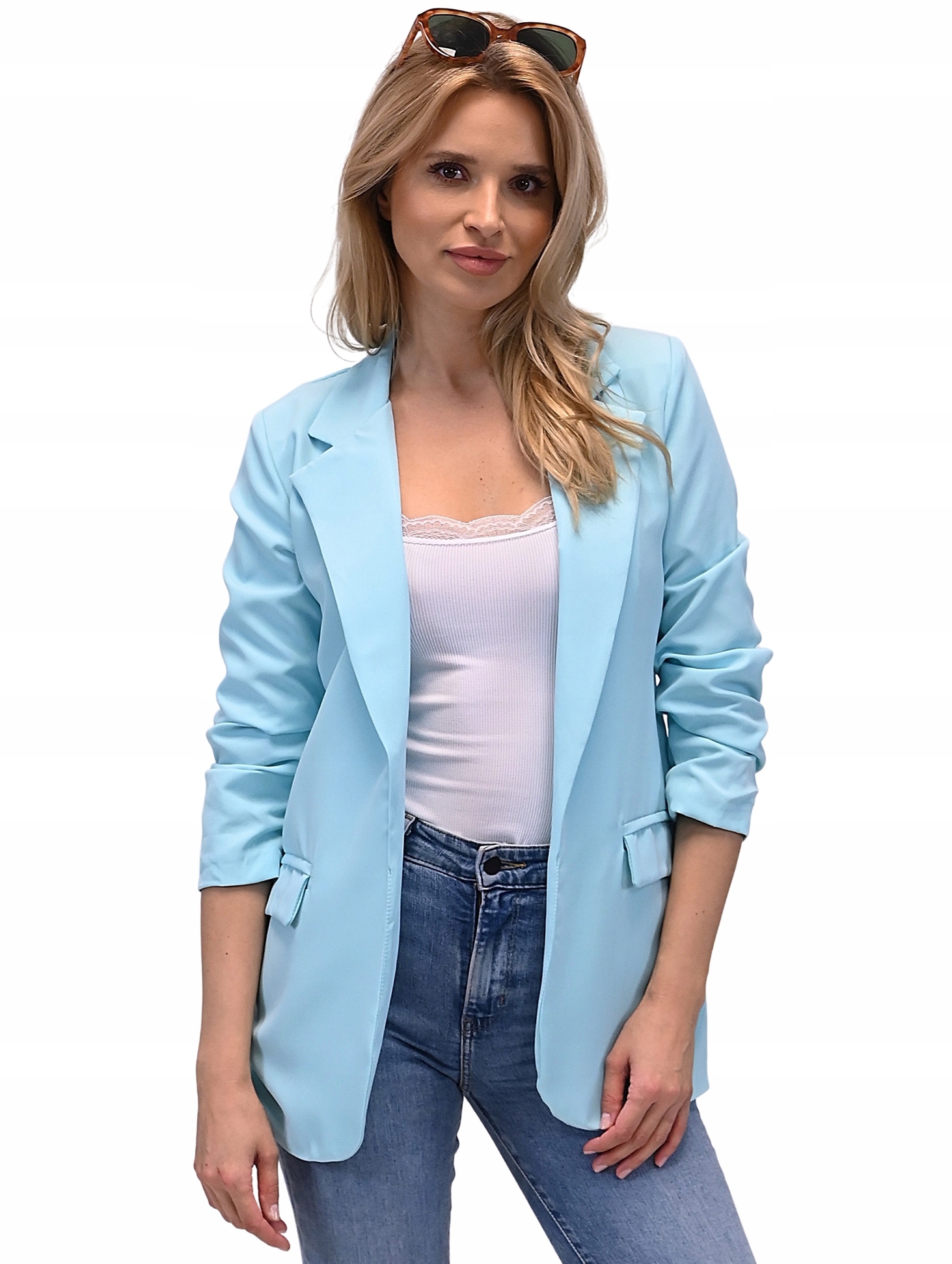 Довга модель, смокінг в тон елегантний і повсякденний стиль. Чудове доповнення до стилю для роботи, навчання або вечірнього виходу. Драпіровані рукава довжиною 3/4 додають оригінальний характер. Дві кишені з боків з ефектними клапанами прикрашають куртку. Вільний крій, з підкладкою та м’якими підплечниками.