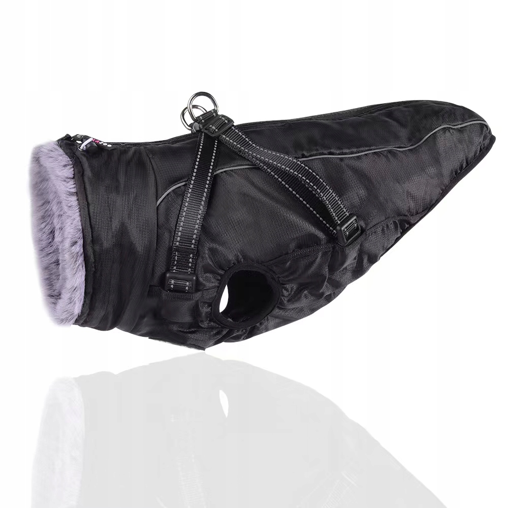 ОДЯГ ДЛЯ СОБАК Водонепроникна зимова КУРТКА зі шлеєю MAKALU чорна 4XL