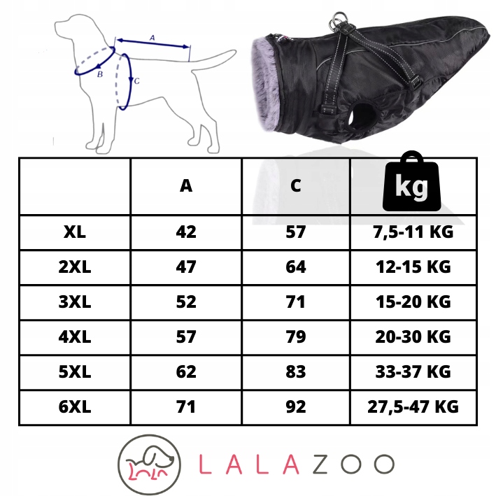 - A - довжина спини + комір приблизно 7-9 см залежно від розміру
