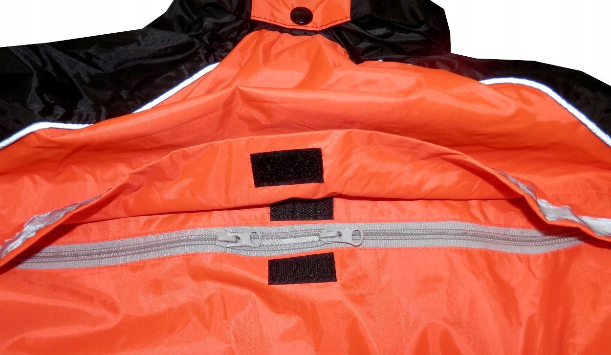 Мотокостюм ASTOR з двох частин - з поліестеру/ПВХ, водонепроникний, легкий, регулюється на талії. Куртка має капюшон, захований у комір. Застібається на блискавку і міцну липучку. Спинка трохи розширена. 4 кишені (в тому числі одна на водонепроникній блискавці). Решта 3 кишені мають клапани на липучках. Ззаду є вентиляційний отвір, що застібається на двосторонню блискавку. відбивачі. Штани регулюються по талії на гумці (від 66 до 100 см), на підтяжках. На ніжках застібаються блискавки на висоті 56 см від стопи. На одній ніжці є містка водонепроникна кишеня на липучці.