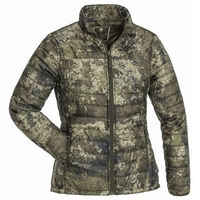 Утеплена, легка, вітрозахисна куртка в оригінальному камуфляжі. Ідеально підходить як верхній шар або як додатковий утеплюючий шар одягу. Подовжена спинка. Жіночний крій. Його можна легко скласти та зберігати в легкій сумці для зберігання, що входить у комплект. Склад: 100% поліестер.