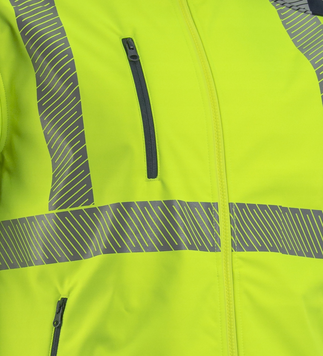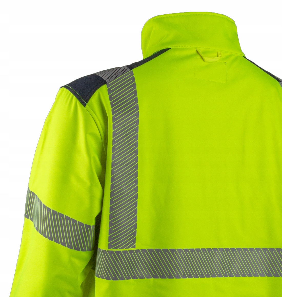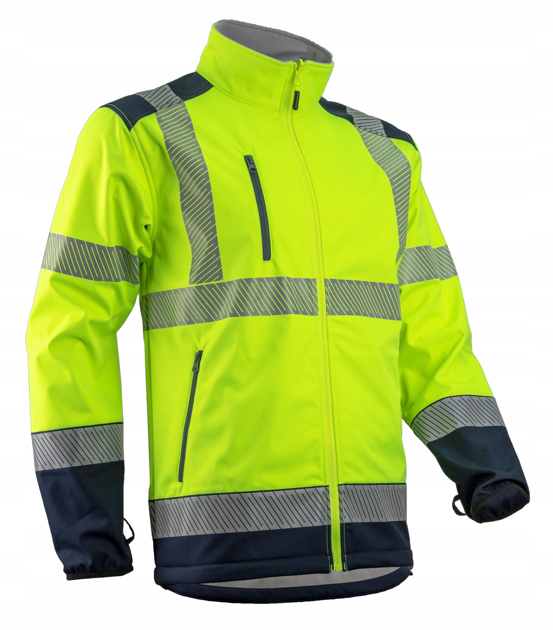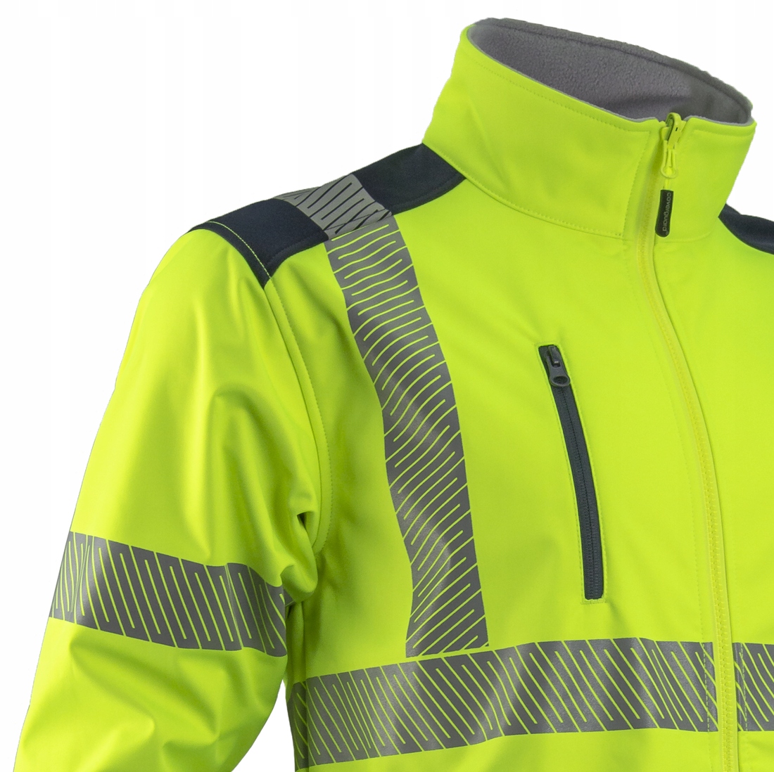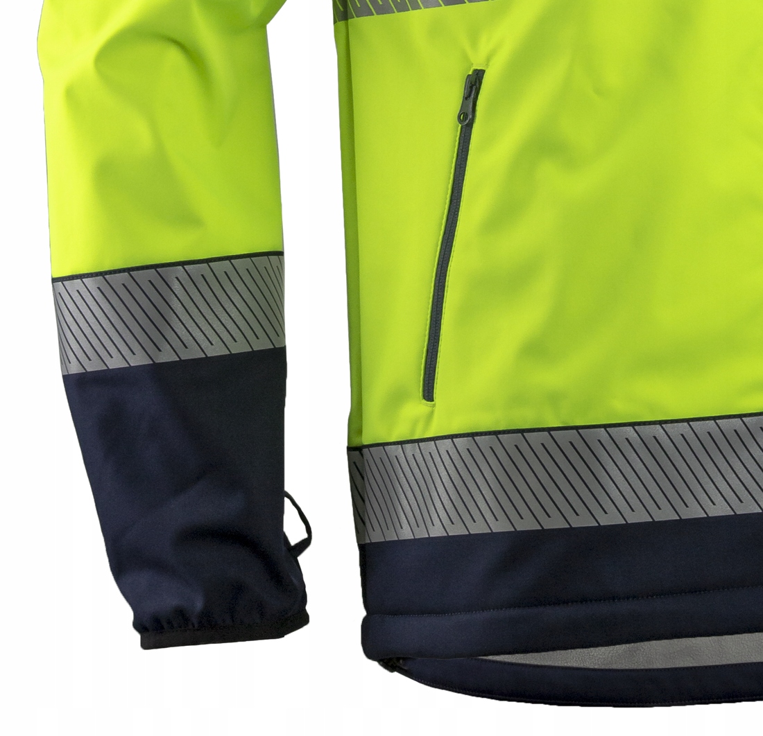 ✅ МАТЕРІАЛ: 3-шарова куртка софтшел: 100% поліестер + ТПУ мембрана + мікрофліс - 300 г/м2. Світловідбиваючі стрічки: сегментовані мікрокулькові стрічки - 5см. Колір: HV жовтий/темно-синій.