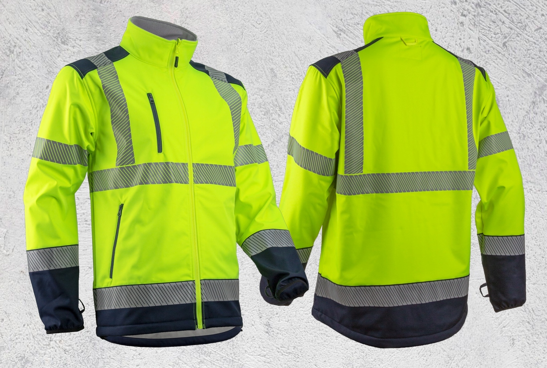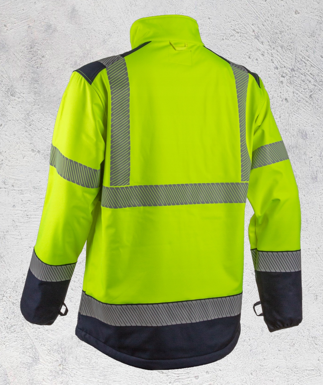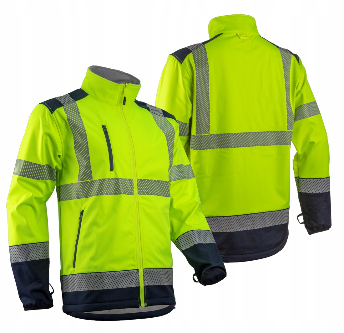 ✅ МАТЕРІАЛ: 3-шарова куртка софтшел: 100% поліестер + ТПУ мембрана + мікрофліс - 300 г/м2. Світловідбиваючі стрічки: сегментовані мікрокулькові стрічки - 5см. Колір: HV жовтий/темно-синій.