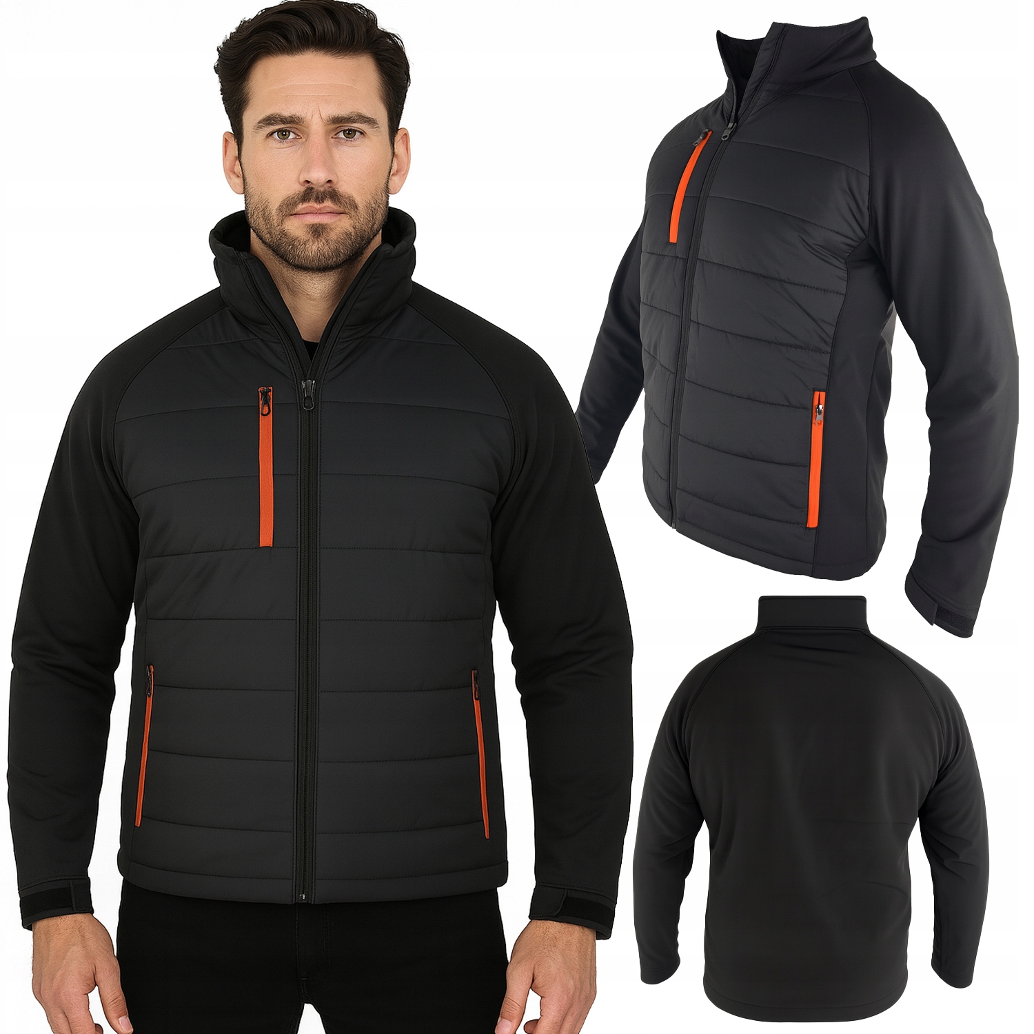 Легка гібридна куртка, створена для комфорту та універсальності. Передня частина виконана з стьобаного матеріалу з утеплювачем, який ефективно захищає від холоду та підвищує комфорт носіння при низьких температурах. Спинка і рукава виконані з еластичного софтшелу, завдяки чому куртка ідеально сидить по фігурі, забезпечує свободу рухів і ідеально підходить для повсякденних справ. Модель оснащена практичними кишенями, що застібаються на помаранчеві контрастні блискавки, що додає сучасний характер.