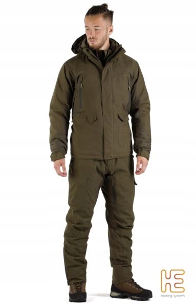 Мисливська куртка Thunder Thermo 4 Green HEAT оснащена двома місткими накладними кишенями, що застібаються на кнопки, двома ергономічними нагрудними кишенями, що застібаються на брызгозащищенную блискавку, і кишенею типу «Наполеон», захованою під основною прокладкою на блискавці. Чоловіча куртка Thunder Thermo 3 також оснащена системою HEAT – системою обігріву, що складається з 8 нагрівальних панелей, що живляться від павербанку. 2 панелі, розташовані навколо спини, попереку, грудей і на рівні кишень, зберігають тепло, забезпечуючи тепловий комфорт. Система працює в 3 режимах, що відповідають за потужність нагріву: (45-50 ℃) 100% - червоний, (40-45 ℃) 75% - зелений, (35-40 ℃) 50% - синій. Щоб увімкнути нагрівання, утримуйте перемикач, закріплений всередині одягу, протягом 3 секунд. Після активації увімкнеться 30-хвилинний таймер. Система має захист від перегріву і водонепроникна. Потрібне джерело живлення — стандарт USB-порту: 5 В — 2,1 А. Система захистить навіть від сильних морозів (до -25°C). Таке рішення дозволяє підтримувати належну температуру тіла навіть під час низьких зимових температур.