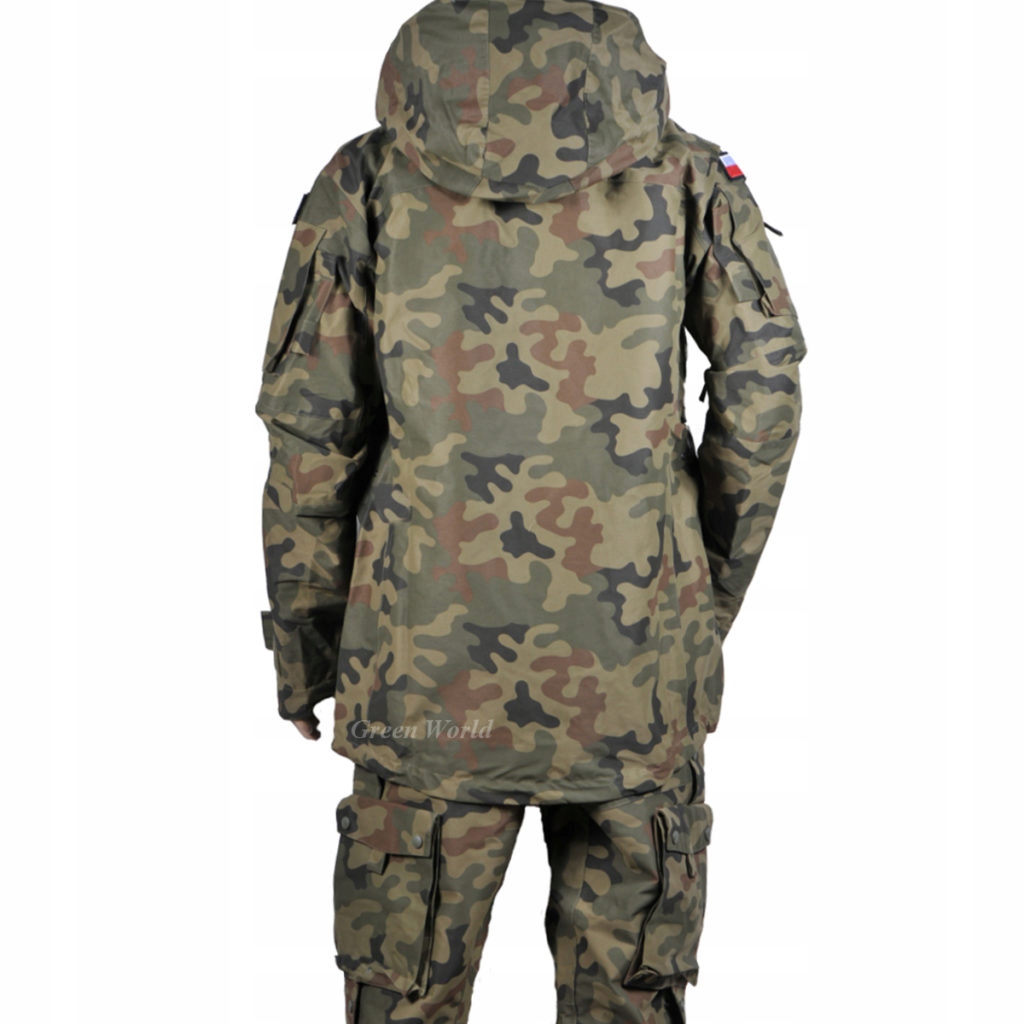 Матеріал: тришаровий ламінат із двокомпонентною мембраною на основі PTFE з зовнішньою поліамідною тканиною кольору хакі з камуфляжним принтом «пантера» та підкладкова тканина поліамід