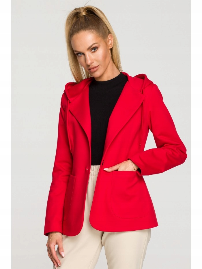Якщо ви думали, що вже знаєте всі версії куртки, у нас є щось абсолютно унікальне. Жакет, але з трикотажу, на підкладці і застібається на один гудзик. Але замість класичного коміра ми розробили комір, який переходить у капюшон із зав’язками, а спереду вшили дві зручні кишені.