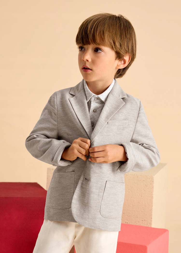 Елегантна дитяча куртка з колекції мерії. Модель, виготовлена з матеріалу з льоном.