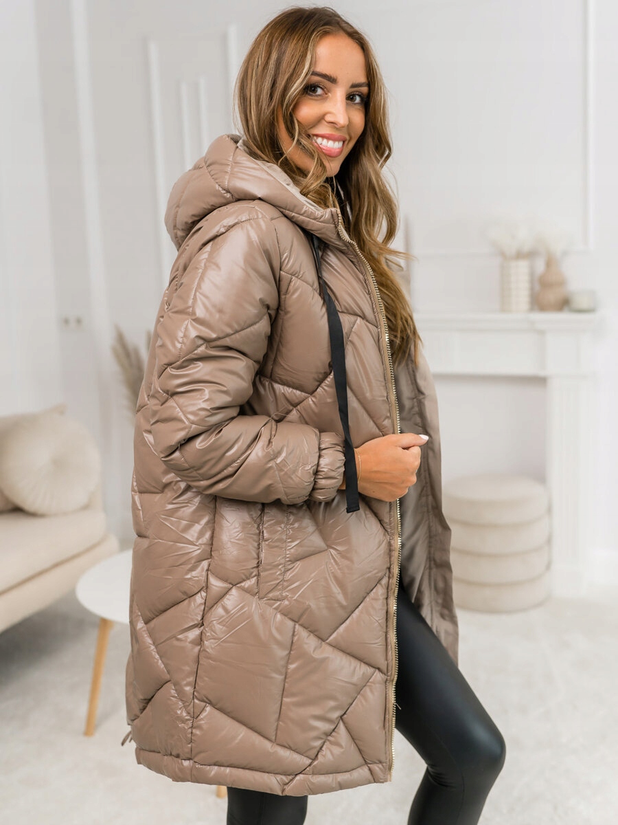 KURTKA ZIMOWA DŁUGA PIKOWANA PŁASZCZ CAMELOWY 5M3189 DENLEY_M