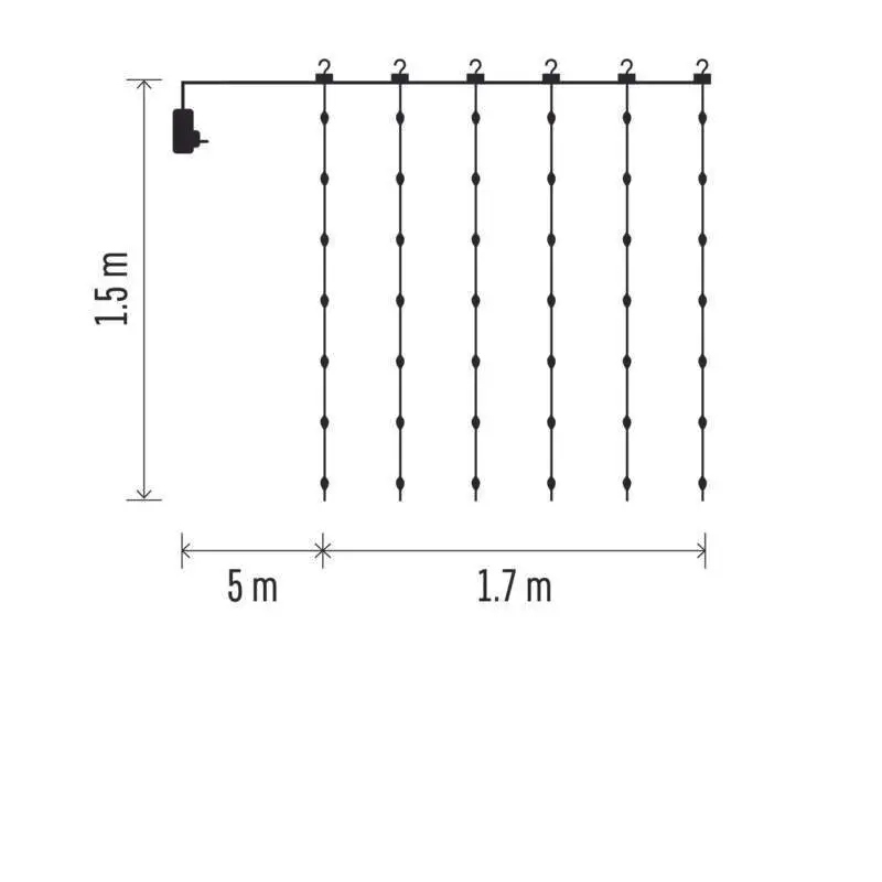 KURTYNA LED DROP KURTYNA 1,7x1,5M CIEPŁA BIEL 8 PROGRAMÓW IP44 180 LED
