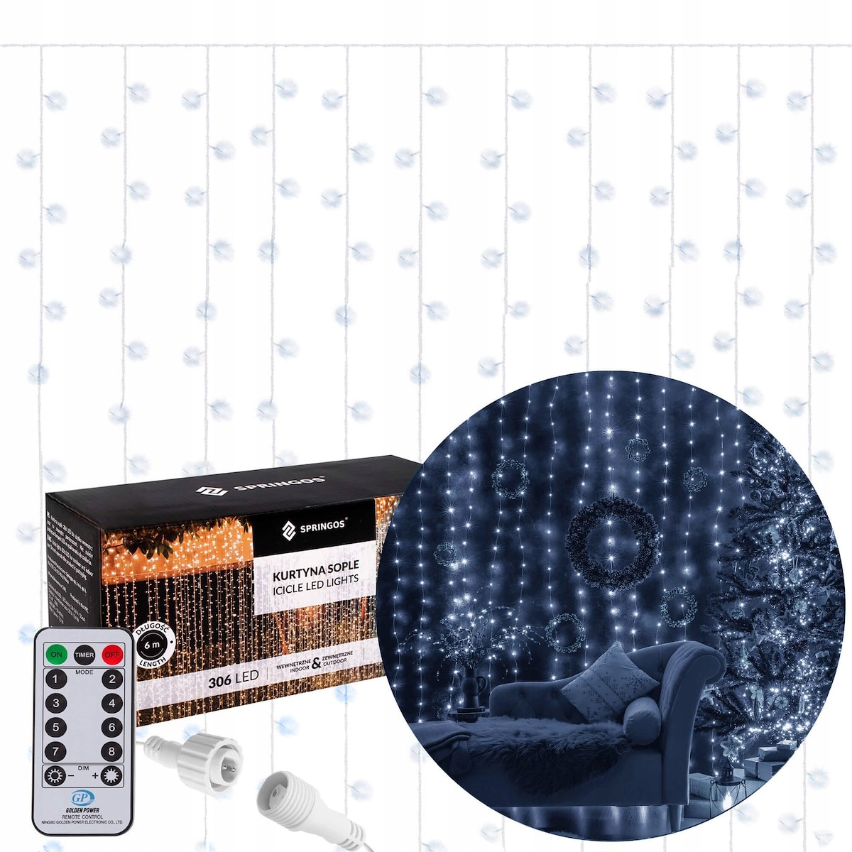 KURTYNA ŚWIETLNA 300 LED LAMPKI SOPLE GIRLANDA