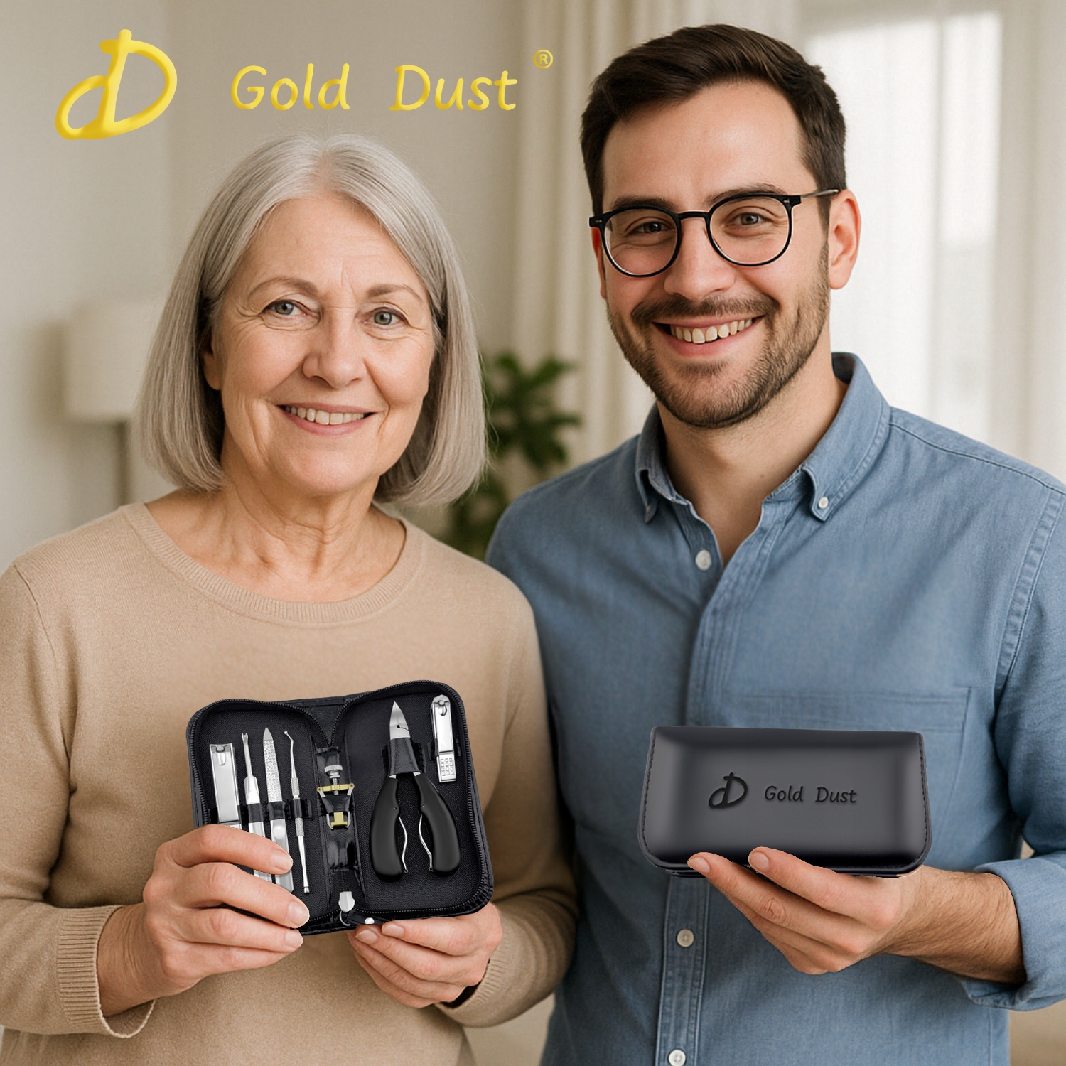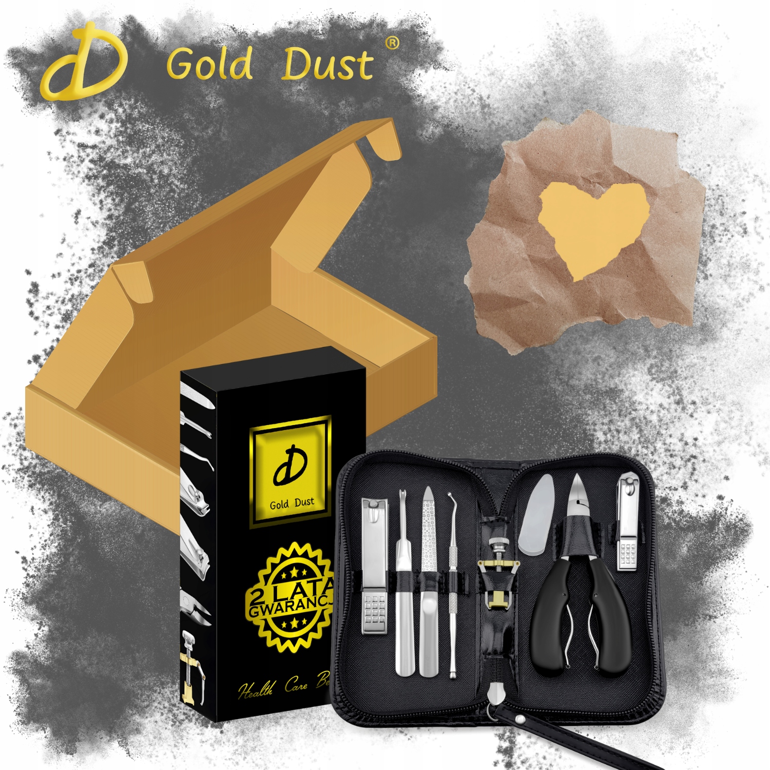 Купуючи набір Gold Dust, ви отримуєте інструменти з високоякісної нержавіючої сталі в елегантному футлярі з ЕКО шкіри. Завдяки цьому набір міцний, гігієнічний і зручний у використанні.