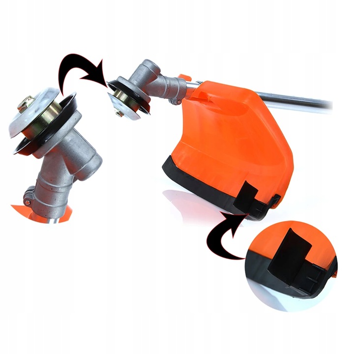- Рукоятку та головку можна вільно обертати, що полегшує косіння у важкодоступних місцях.