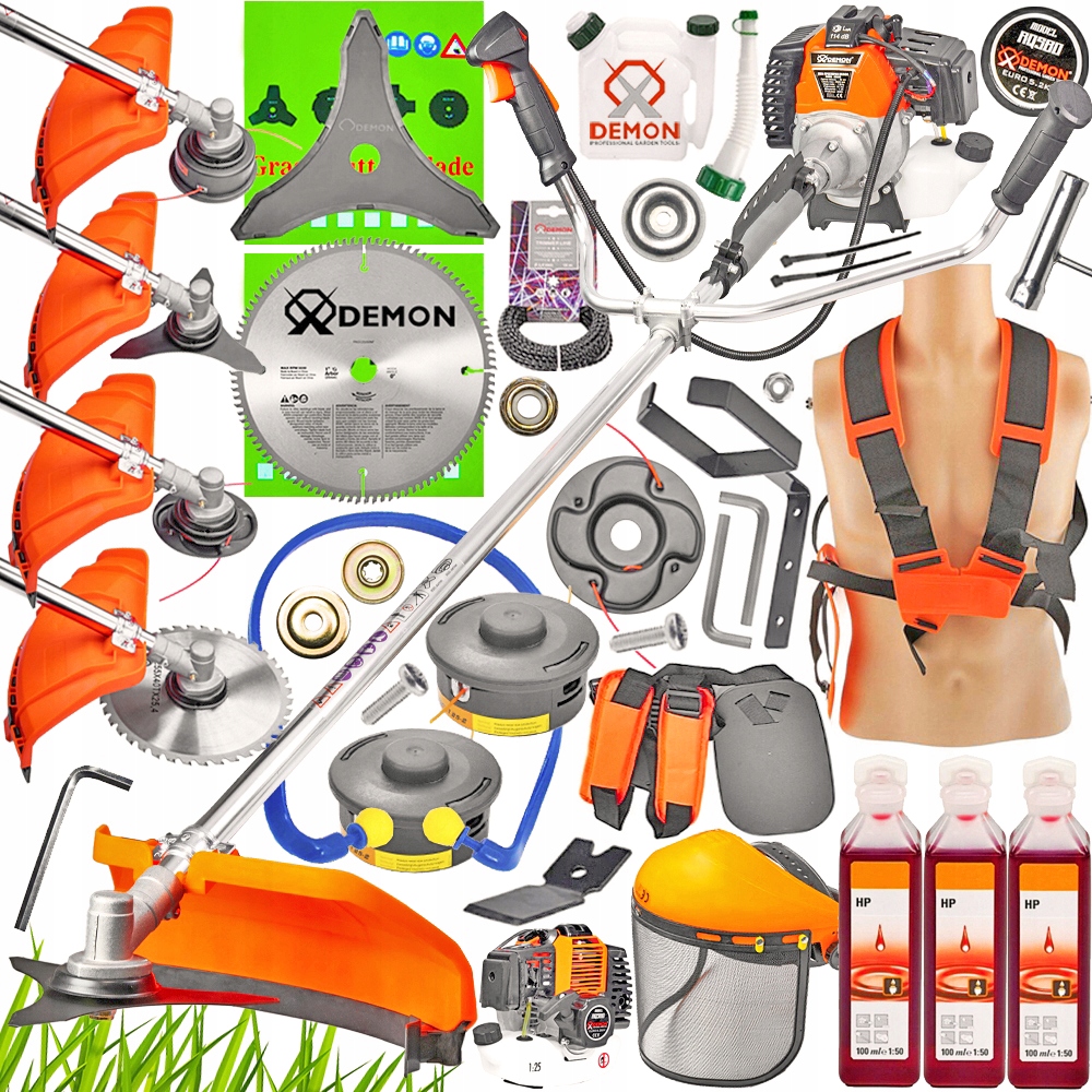 Найбільше потужний на ринку двигун DEMONвстановлюється безпосередньо на ручці. Велике лезо відмінно впорається навіть з найміцнішою травою, заростями або кущами, підліском або гілками.