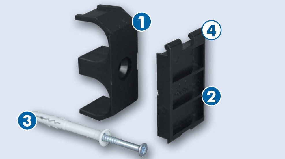 МОНТАЖ РОЗСУВНОЇ РУЧКИ. Регульований розсувний кронштейн також використовується для кріплення труб (діаметром до 22 мм) і плінтусів, що дозволяє легко усунути нерівності підлоги. Розсувна ручка розташовується прямо біля підлоги і після просвердлення отвору прикріплюється шпилькою для швидкого монтажу. Відстань між затискачами має бути приблизно 1 м.