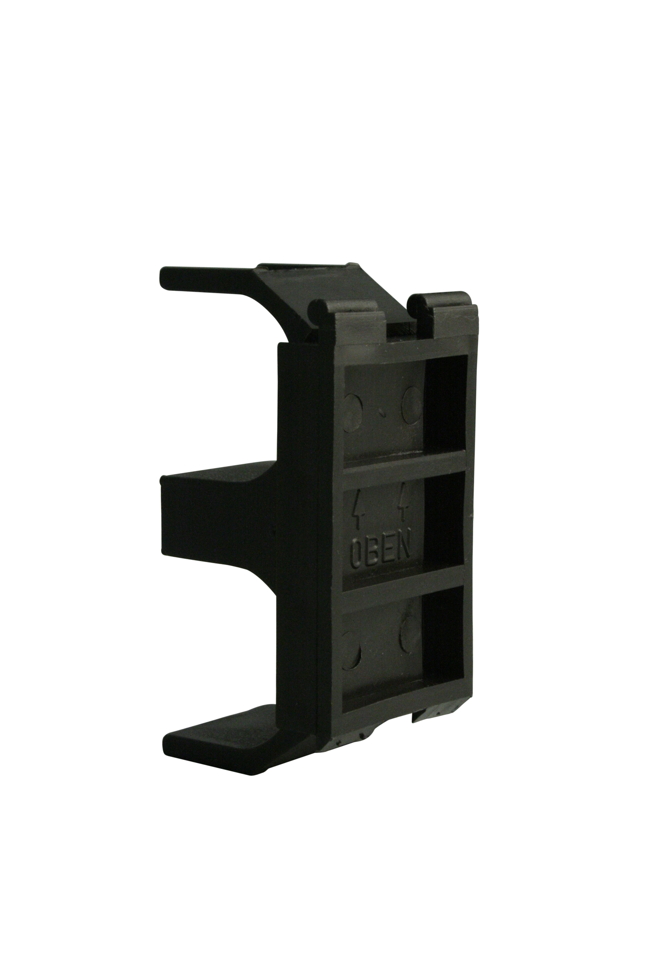 МОНТАЖ ПЛІНТУСА. Подальший монтаж плінтуса також простий. Він кріпиться одним «клацанням» до верхнього виступу висувної ручки і натискається рукою вниз до фіксації.