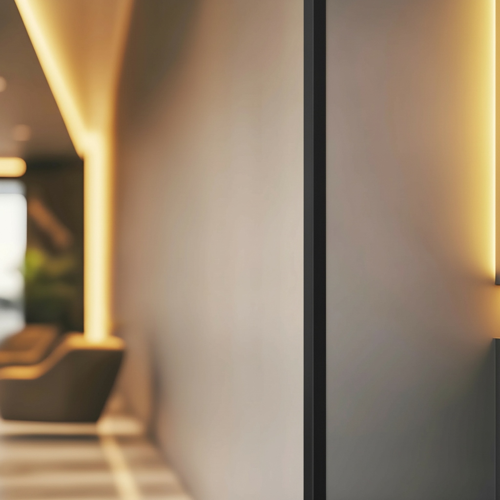 ✅ Офісні та комерційні приміщення – естетичне рішення, яке маскує деформаційні шви та підкреслює професійний характер інтер’єру.