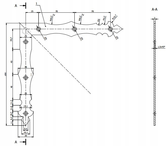 - кількість отворів - 6 отворів ø5 мм
