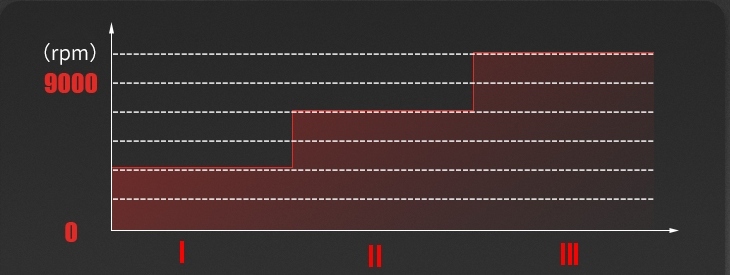 Швидкість розділена на 3 передачі та збільшується на одну передачу кожного разу, коли натискається кнопка