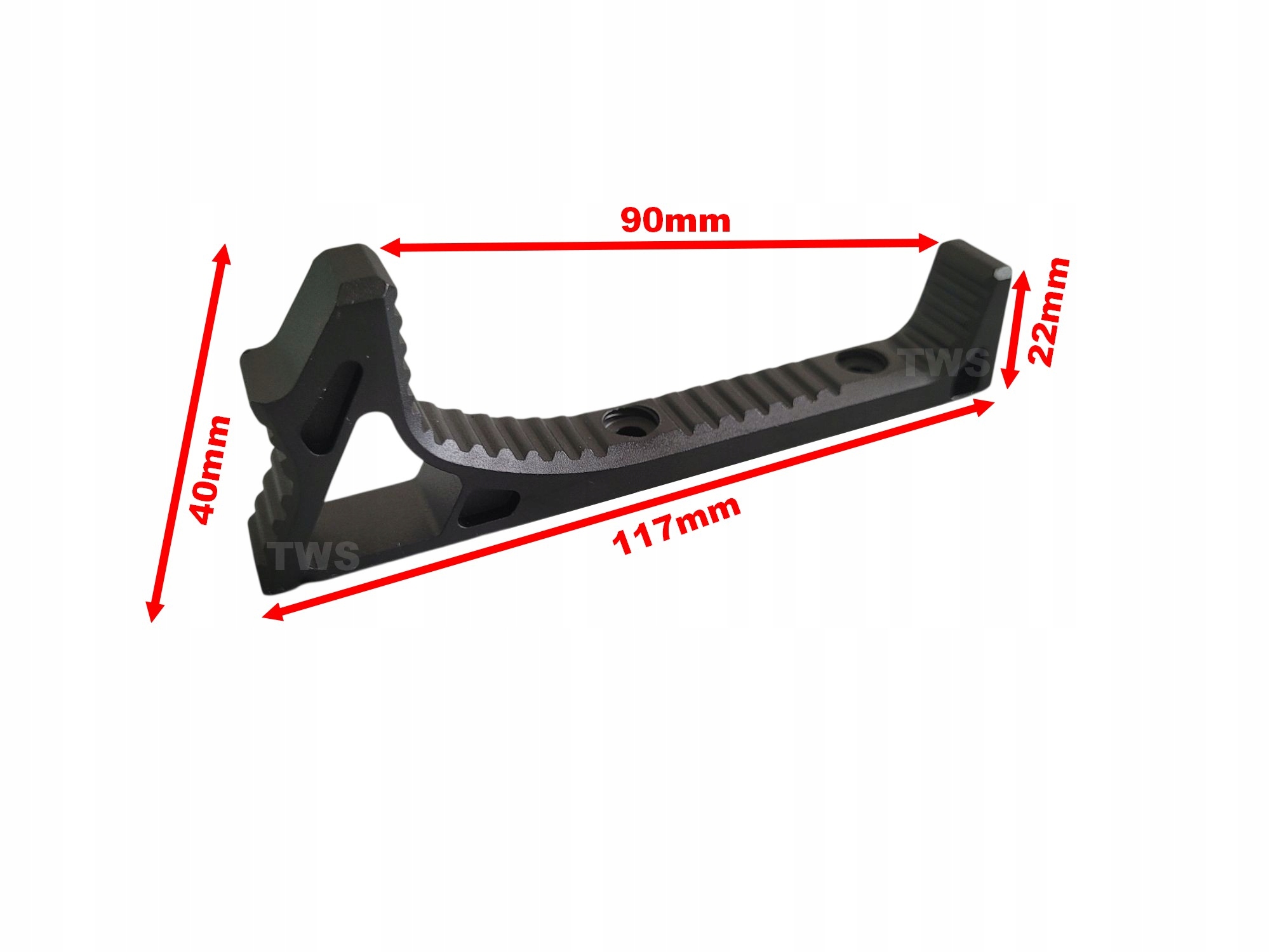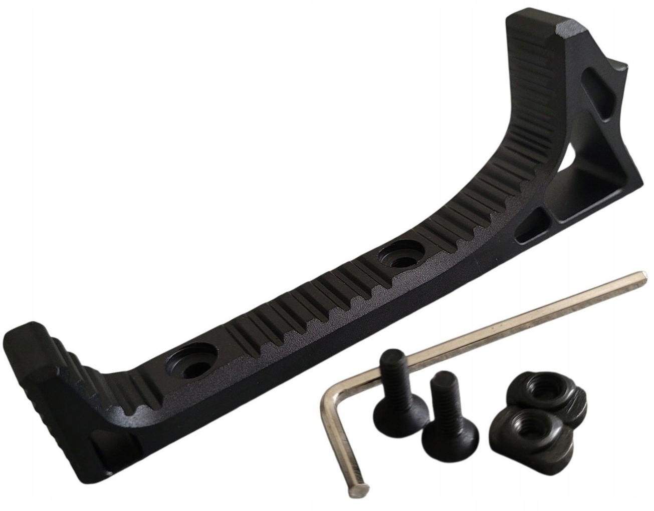 Міцна та легка кутова рукоятка за зразком ручок AT-3 та Strike Industries LINK-CFG-BK, виготовлена з анодованого авіаційного алюмінію, призначена для покращення контролю над зброєю під час динамічної стрільби. Підходить до стандартних систем кріплення M-LOK. Це забезпечує більш природне положення руки, покращує стабільність і знижує стомлюваність.