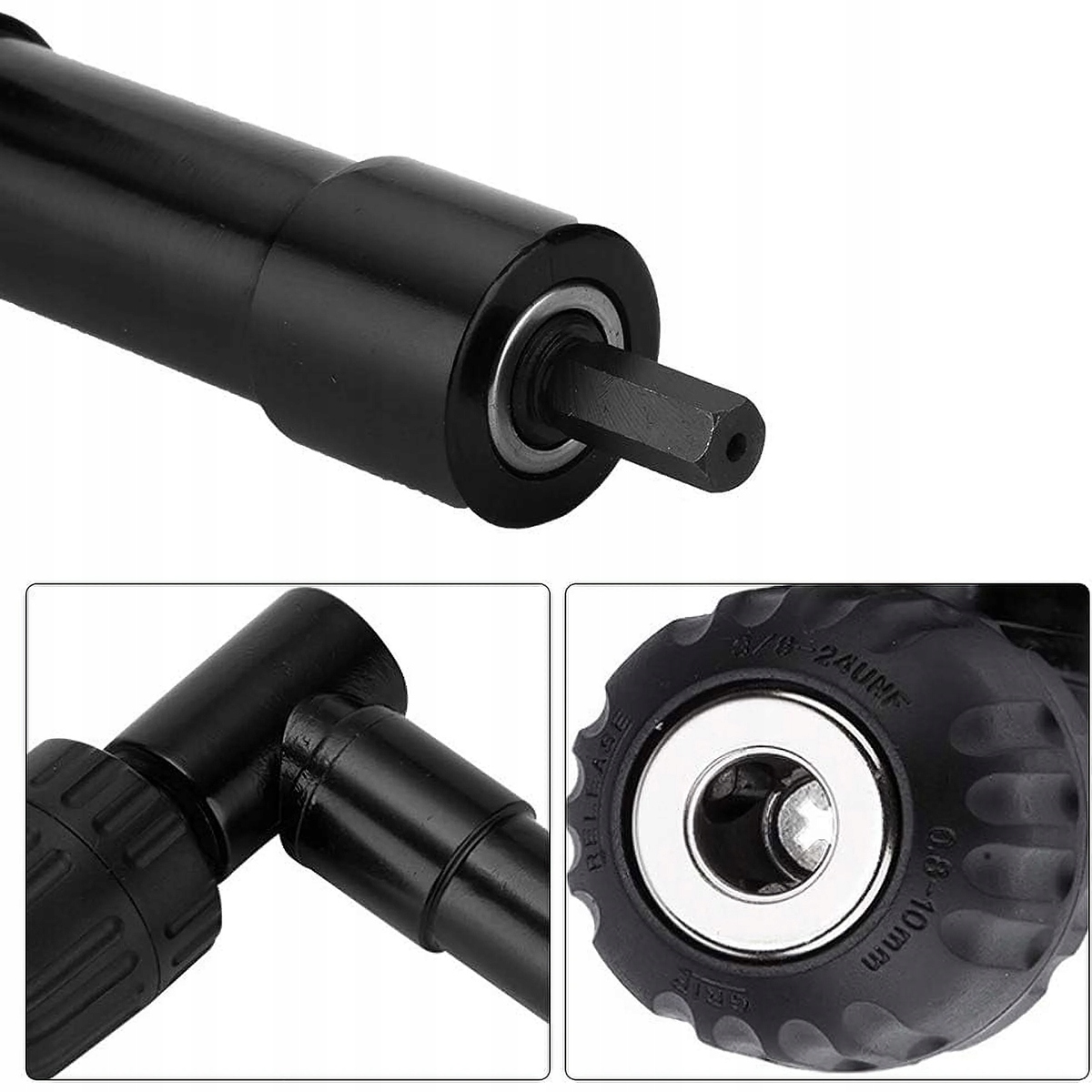 Це високоякісне кутове свердло для свердел 0,8-10 мм із максимальним діаметром хвостовика 3/8" і шестигранним хвостовиком 8 мм, що робить його сумісним майже з усіма стандартними свердлами.