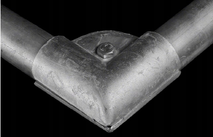Хомутик для з'єднання двох труб 3/4" горизонтально в кутах, що дозволяє кріпити труби під кутом 90 градусів.