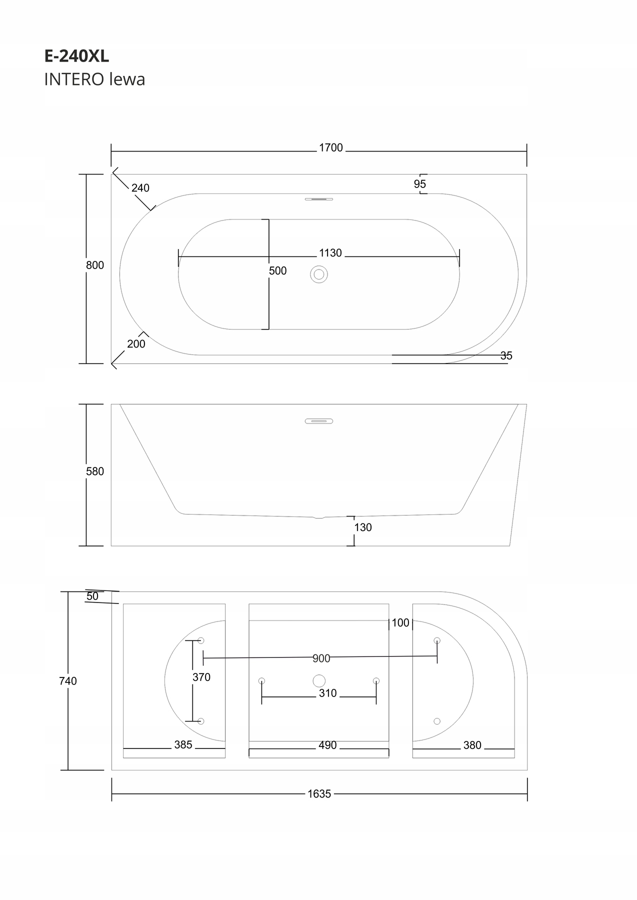 - Довжина ванни: 170 см