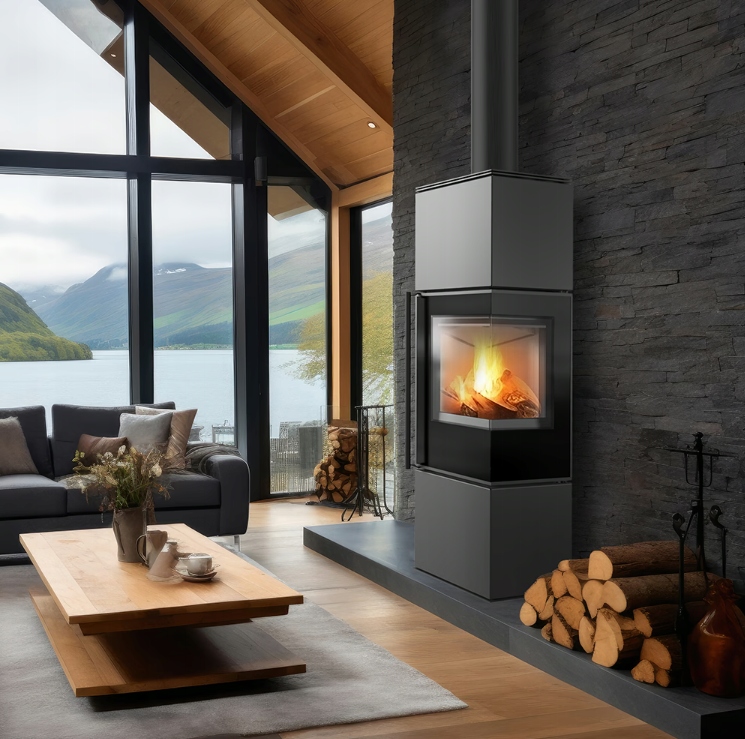 скляне декоративне скло з естетичним чорним декором надає печі елегантний вигляд, що робить її не лише функціональним елементом, але й привабливим доповненням до інтер’єру.