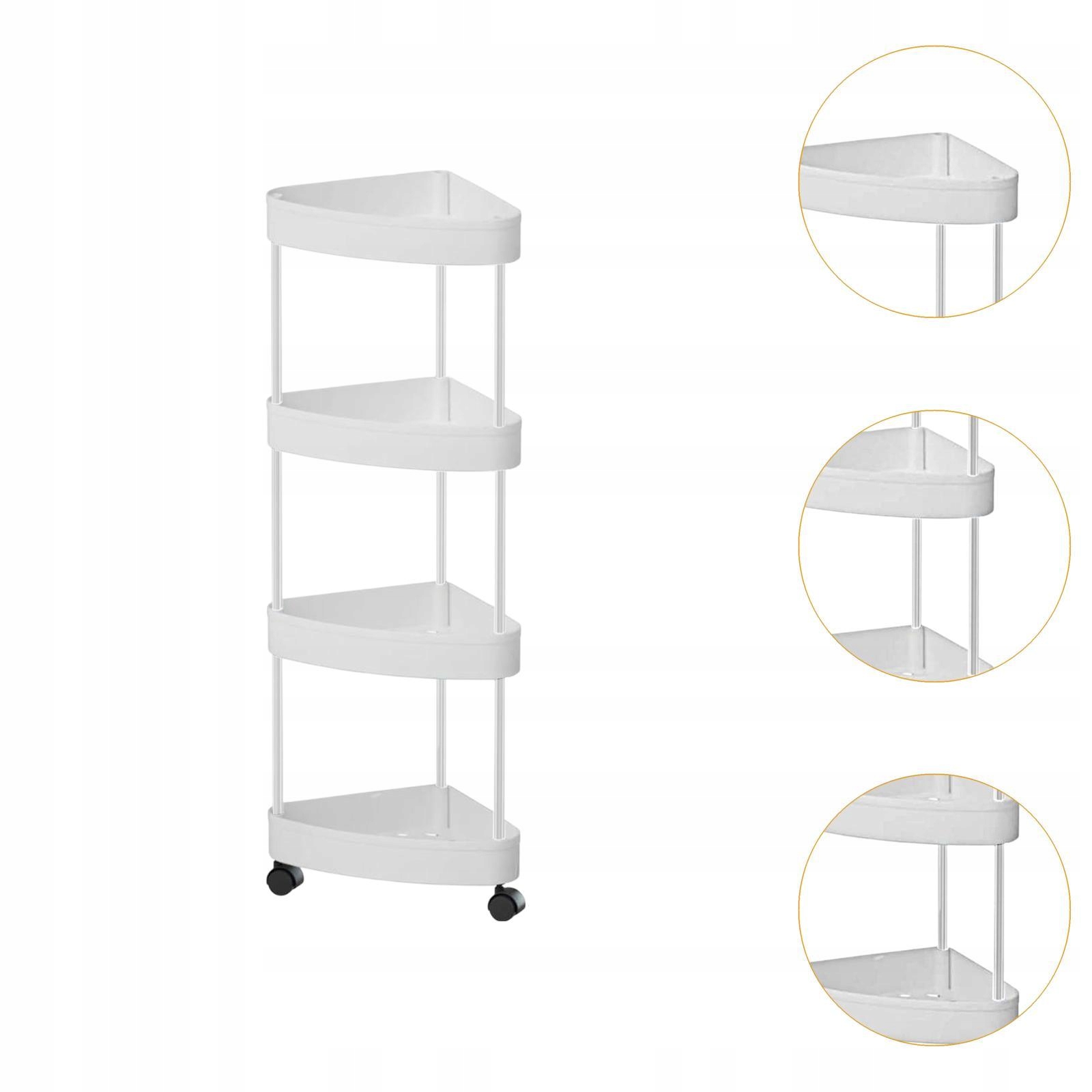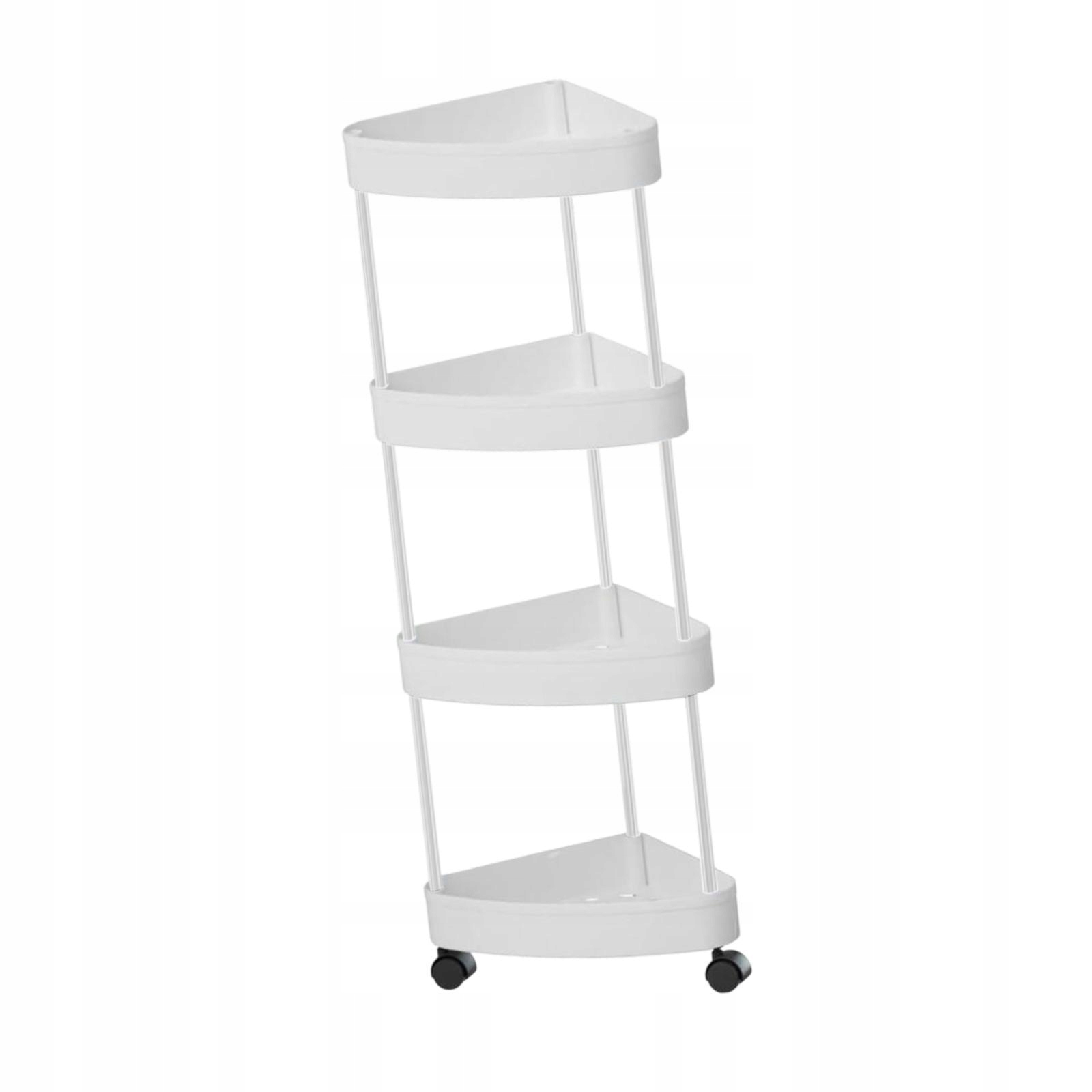 Кутова полиця підлоги з колесами трикутна мультипірна для невеликих 4 рівних білих