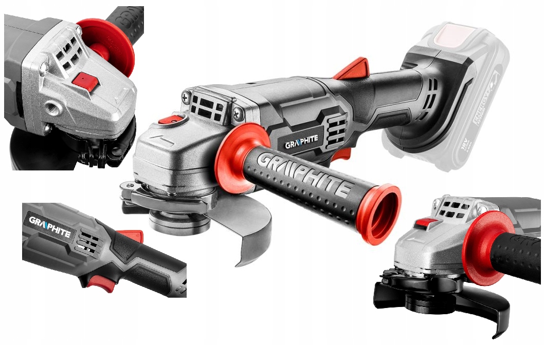 Акумуляторна кутова шліфувальна машина GRAPHITE 125 мм Energy+ 18 V 58GE130 - пристрій на акумуляторі з системою Energy+. Він сумісний з літій-іонними акумуляторами 18 В. Рекомендована ємність акумулятора становить 4 Ач. Характеризується швидкістю 10 000 оборотів в хвилину і різьбою шпинделя М14. Оснащений диском діаметром 125 мм, він дозволяє зручно різати різні матеріали. Двопозиційна бічна ручка та блокування шпинделя полегшують і прискорюють виконання запланованих завдань. Для цієї моделі болгарки також характерна безключова установка кришки. Його ергономічна форма робить роботу приємнішою. Інструмент бренду GRAPHITE рекомендовано для любителів DIY.