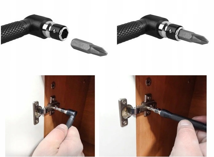 6-сторонній тримач насадок дозволяє загвинчувати або відкручувати гвинти під кутом 90° завдяки нековзкій структурі це забезпечує надійний захват навіть під час роботи над головою у важкодоступних місцях, куди іншим інструментам важко дістатися.