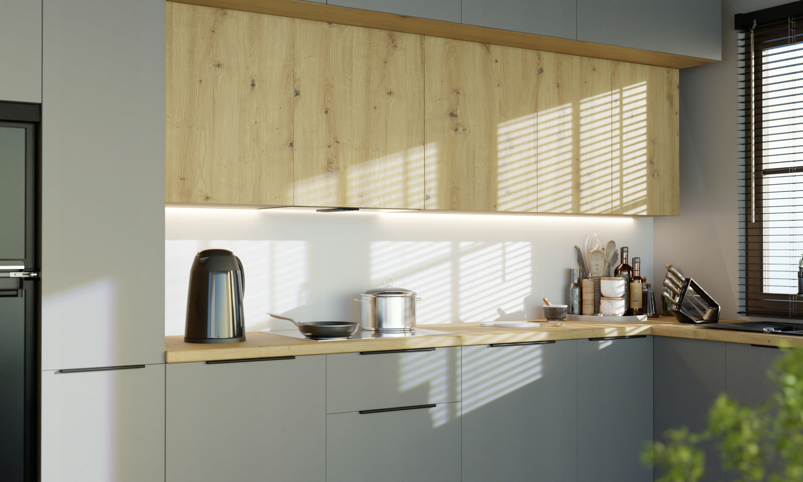 - - колір фасадів верхніх шаф: матовий (ПВХ),