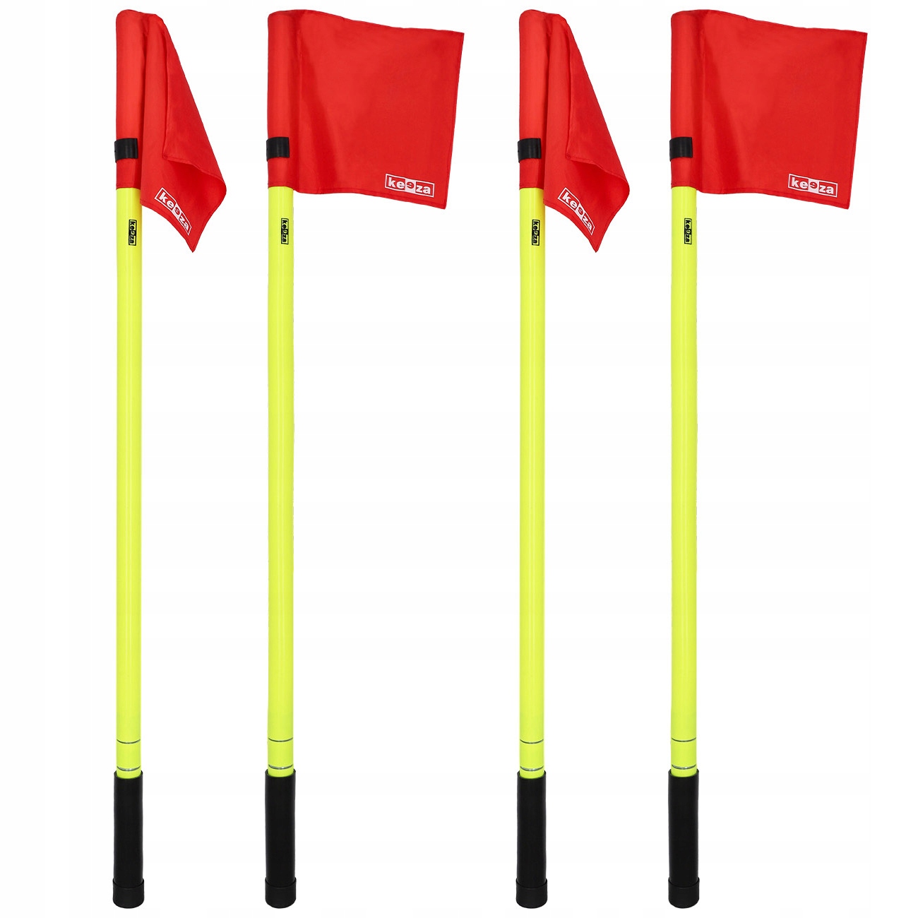 Набір містить червоний прапорець і рукав для монтажу в землю, що забезпечує швидке та стабільне встановлення. На древку та прапорі розміщено логотип KEEZA, що підкреслює професійний характер набору.