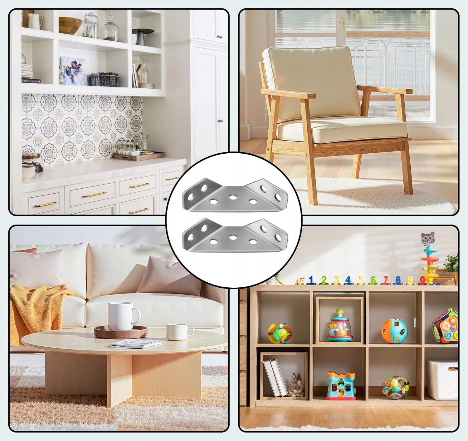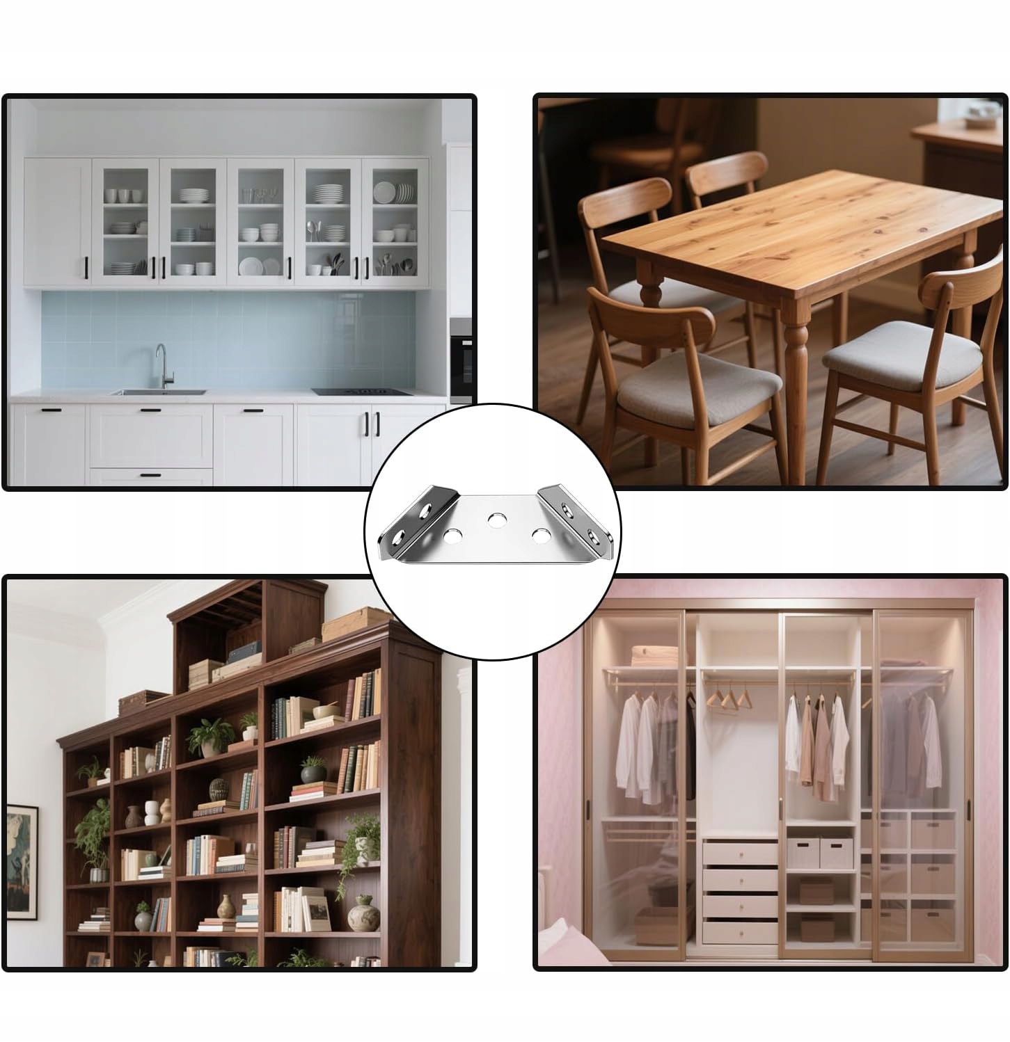 ✅✅Широке застосування: Кутові кронштейни з нержавіючої сталі широко використовуються всередині та на вулиці, служать кутовими застібками, кутовими кронштейнами для ніжок столу, кутовими кронштейнами для стільців, кутовими кронштейнами для ліжок, кутами шаф, кутовими кронштейнами для шаф тощо. Підходить для з’єднання столів, гардеробів, книжкових шаф, стільців, шаф, вікон, ящиків та інших дерев’яних меблів для кріплення та ремонту, ідеально підходить для зміцнення меблевої фурнітури.