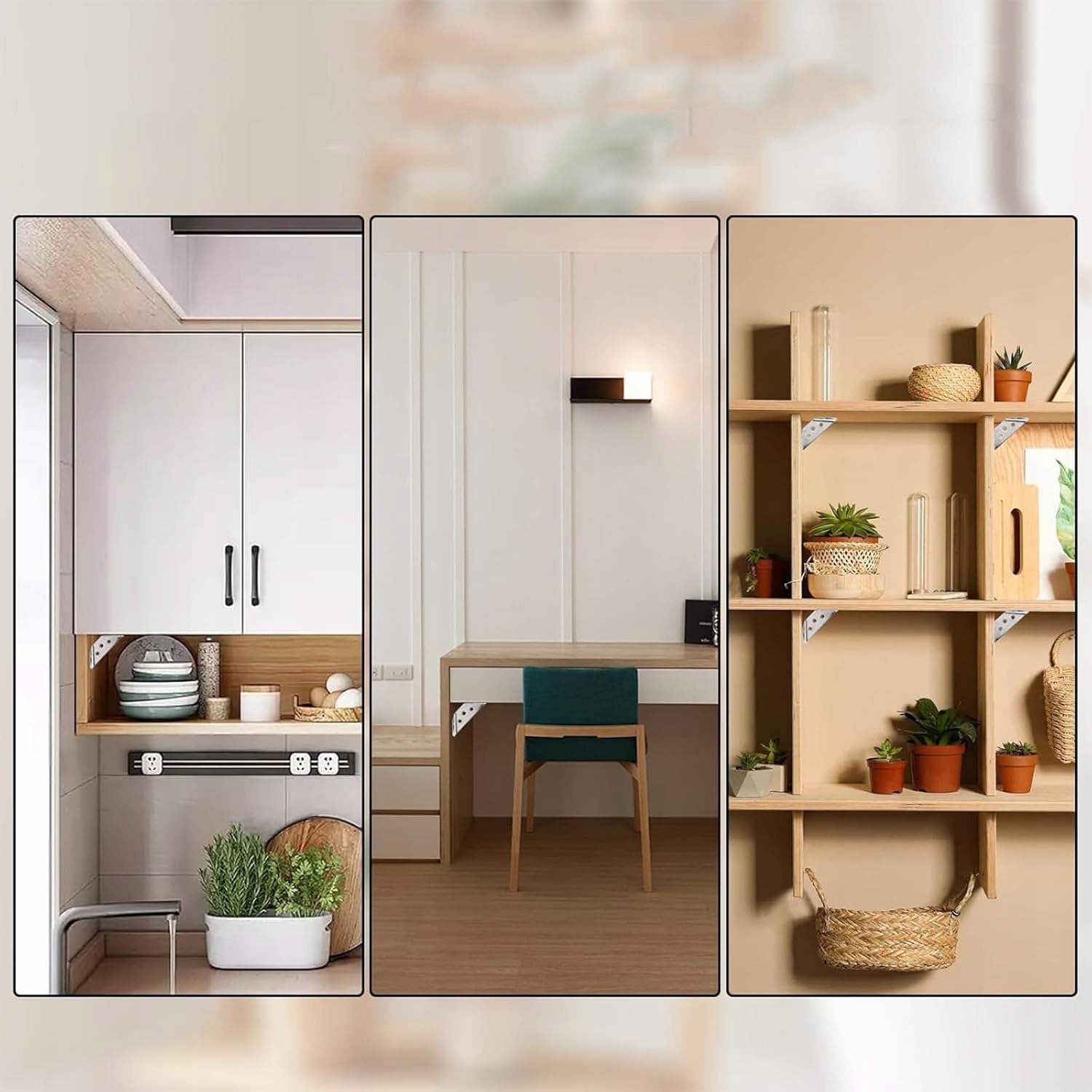 ✅✅Дерев’яні кутові кронштейни преміум-класу:наші меблеві кутові кронштейни та гвинти виготовлені з високоякісної нержавіючої сталі, стійкої до іржі та корозії, яка не деформується, є міцною опорою, твердою, міцною та довговічною. Трикутні кронштейни дерев’яної рами мають гладку та блискучу поверхню, яка є безпечною та не дряпає ваші пальці та меблі.