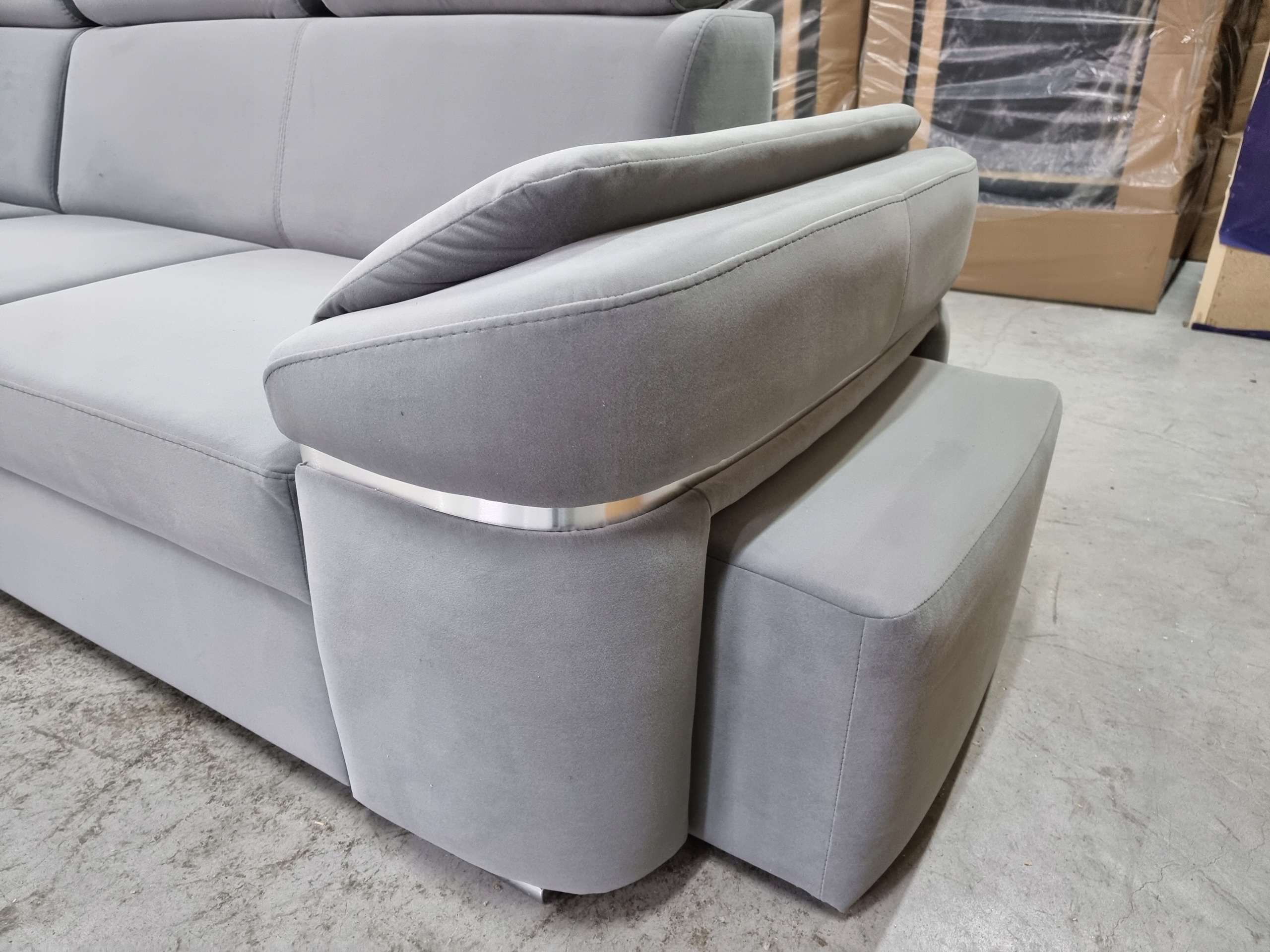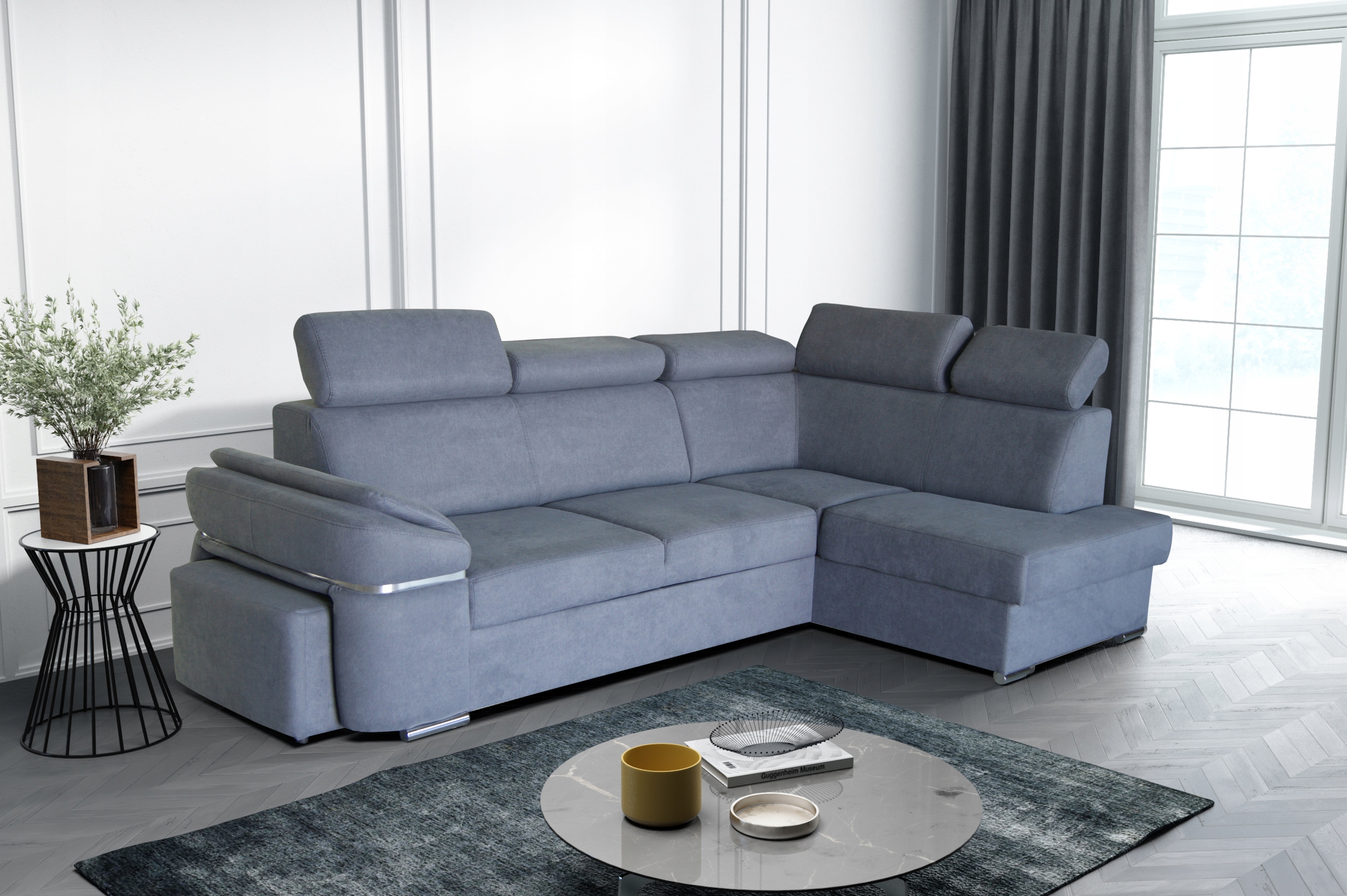 Кутовий диван AVANTI - ідеальний варіант для вас, якщо ви хочете оформити свою вітальню в сучасному стилі. Представлені меблі відрізняються красою, простотою, функціональністю та комфортом. Кутовий диван Аванті має функцію сну, контейнер для постільної білизни і пуф прихований збоку, додатково підлокітник має декоративну алюмінієву планку