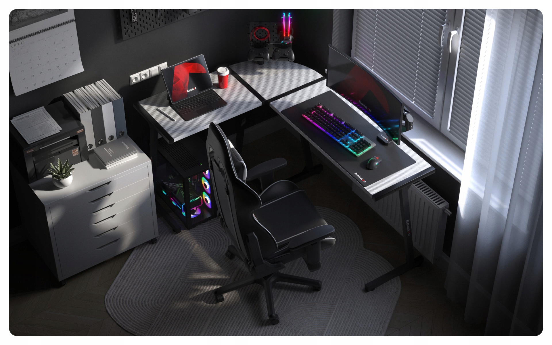 Кутовий ігровий стіл Huzaro Hero 6.0 має все, що вони повинні мати ігрові столи. Це не тільки практична ігрова підставка, але і привабливий елемент дизайну інтер'єру. Довговічність верхньої частини, позачасовий дизайн і здатність адаптуватися до різних просторів роблять цей стіл відповідним очікуванням навіть найвимогливіших ентузіастів ігор. Тому, якщо ви все ще думаєте, чи вибрати ідеальний стіл для кімнати підлітка або домашнього офісу, вибирайте кутовий стіл Huzaro. Наші сучасні столи, такі як Huzaro Hero 6.0 White, є хітом, коли мова йде про ігрові меблі.
