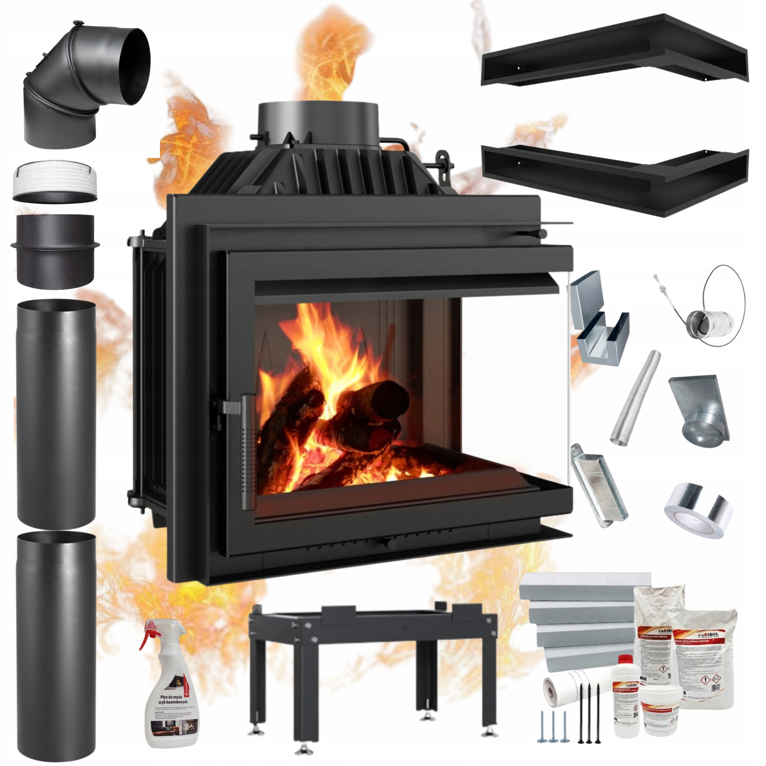 Кутовий залізний камін з потужністю 8 кВт простих/ правих грилів + повний збірний комплект + безкоштовний рідина брандмауера