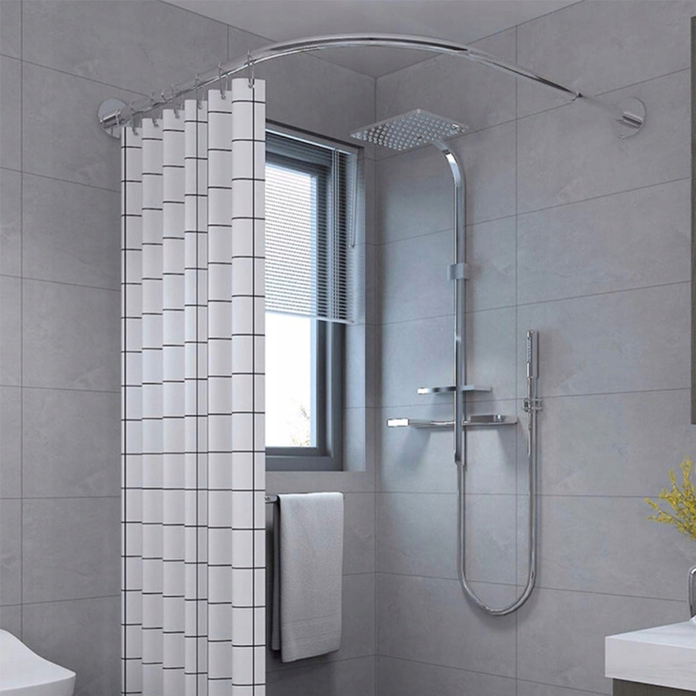 Довжина шторки для душу регулюється від 70 до 95 см відповідно до відкритого простору. Будь ласка, виміряйте довжину та ширину вашого простору перед покупкою, ця стійка підходить для розміру 70-95 x 70-95 см. Цю вигнуту душову штангу легко повісити штори, проста конструкція, економія місця. Підходить для ванних кімнат, душових, ванн, магазинів одягу, примірочних, роздягалень тощо.