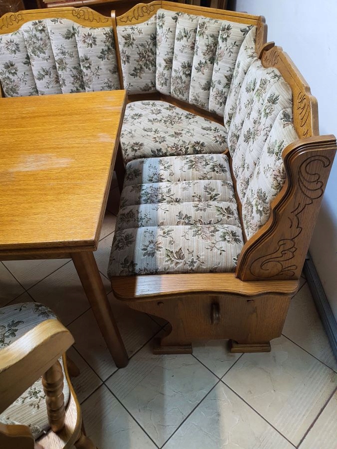 Меблі, що зберігаються в дуже хорошому стані, видно на знімках, добре, ви можете негайно поставити її в квартиру. Кут був прекрасно закінчений і може виглядати ідеально у вітальні чи кухні зі столом та стільцями.
