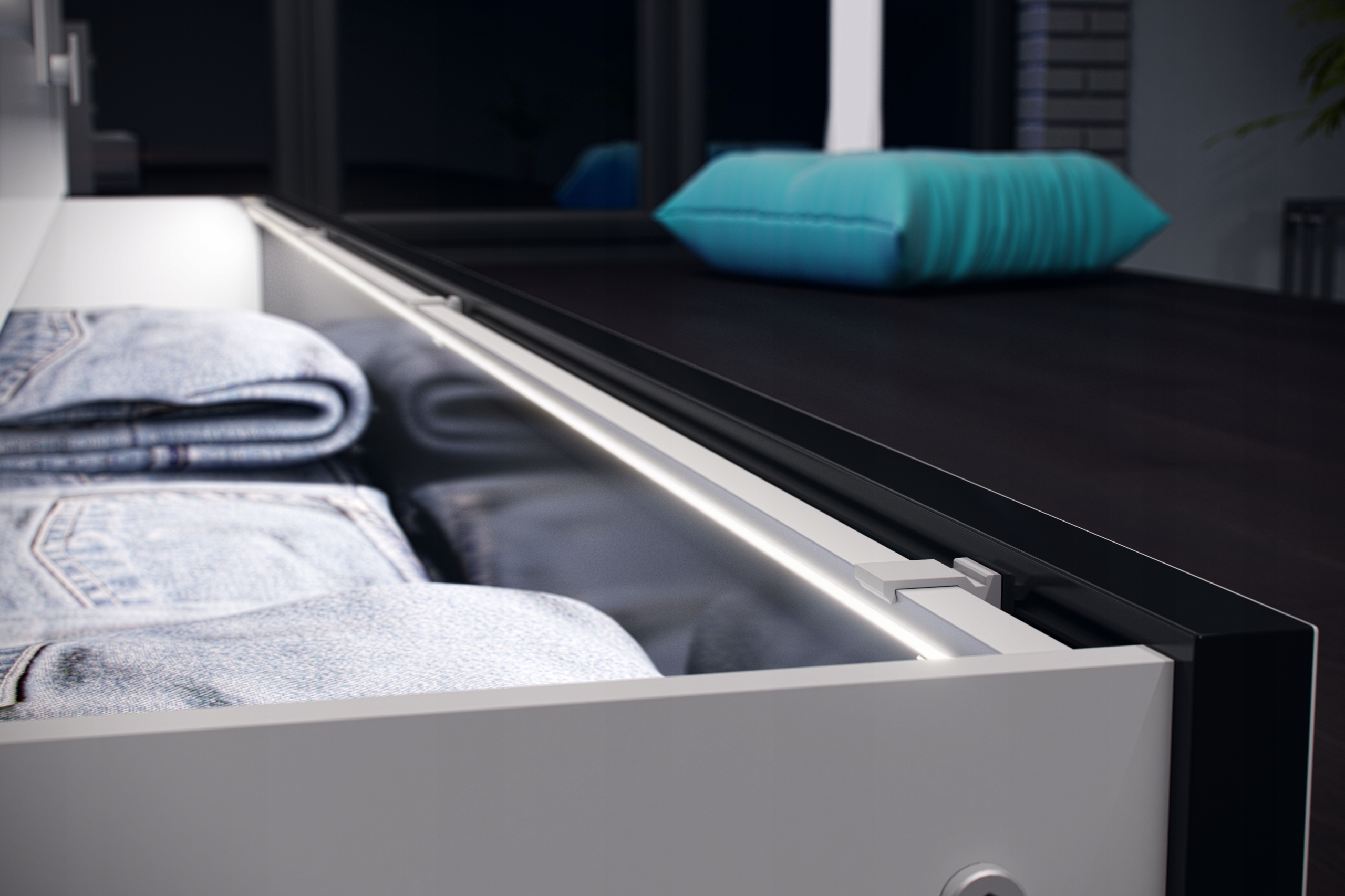 За бажанням можливий виведення кабелю знизу стрічки, що дозволить вам заховати кабелі всередині шафи.
