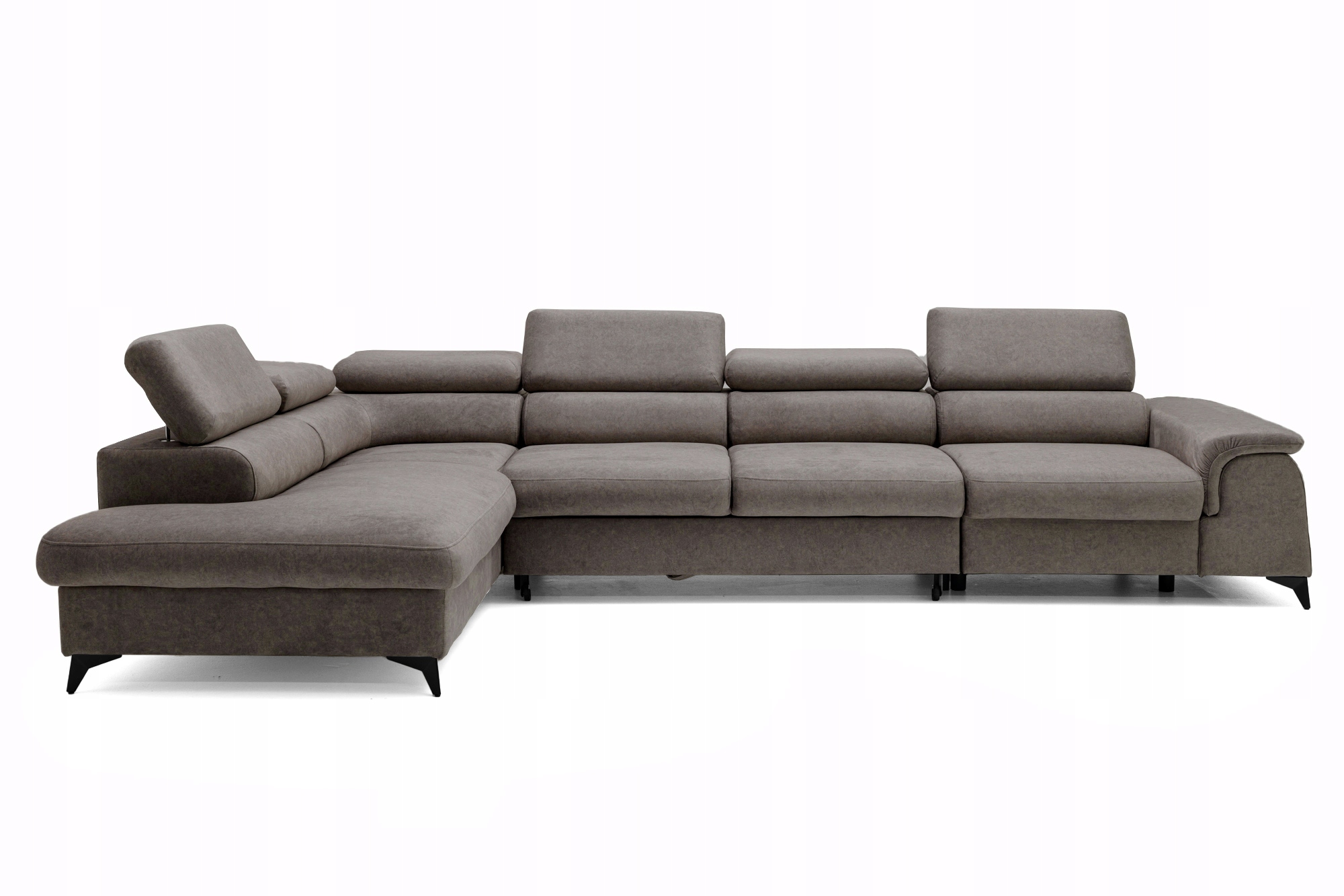 Особливо корисна, коли гості з’являються або коли ви плануєте ніч у вітальні перед телевізором. Виготовлення висувного елемента у кутовому тканині створює цілісне ціле. Механізм складання типу дельфіну - це перевірені рішення, які полегшують використання цієї додаткової функції.