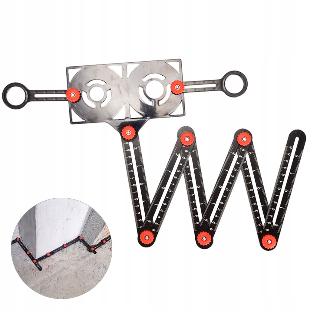 Детальний інструмент для вимірювання кута: цей кутовий інструмент має ознаки (всі та сантиметри), які дуже підходять для вимірювання кута. Ви можете регулювати розмір, щоб точно вибрати плитку. Метал - це вимірюючий та інтегрований інструмент для розміщення отворів. 4 Вимірювання кута: Наша лінійка для вимірювання багатьох кутів нещодавно була вдосконалена з багатими функціями. Це вимірювальний інструмент та відкривача для розміщення плитки. Інші популярні вимірювальні лінії складаються лише з чотирьох частин. Наш нещодавно модернізований універсальний кут має шість частин. Просто відрегулюйте шість металевих ручок, щоб отримати потрібну форму. Вимірювання об'єктів різної форми швидке і просте.