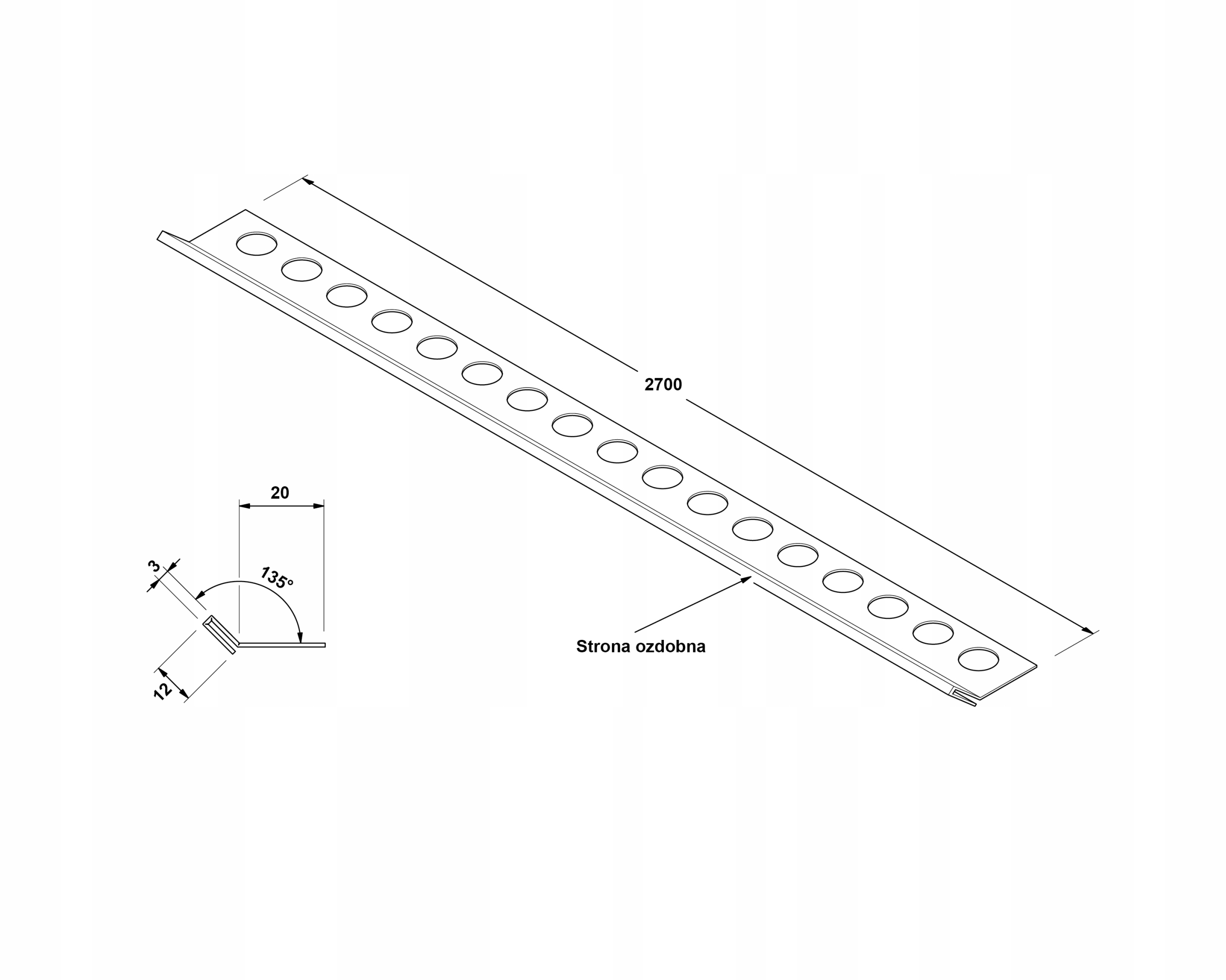 КУТОВА СТРІКА З НЕРЖАВІЮЧОЇ СТАЛІ Rs ДЛЯ ПЛАСТИН, РІЗАНИХ ПІД КУТОМ 45