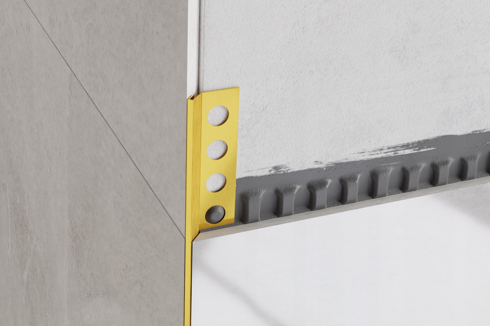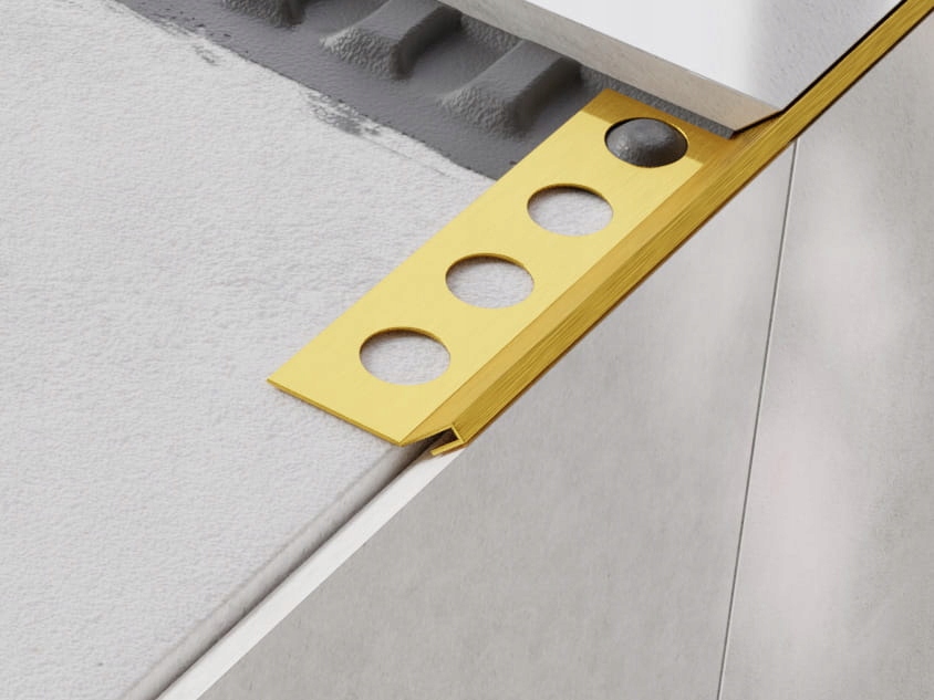 Універсальний R-профіль (куточок для плитки, обрізаної під кутом) дозволяє покращити естетичність кутових країв, одночасно збільшуючи їхню довговічність.