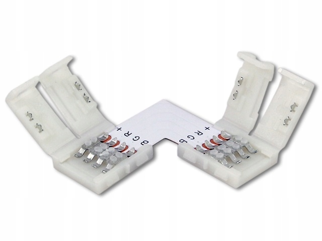 З’єднувач призначений для кутового з’єднання RGB-стрічок шириною 10 мм. З’єднувач має засувку, яка забезпечує надійне та захищене від короткого замикання з’єднання.